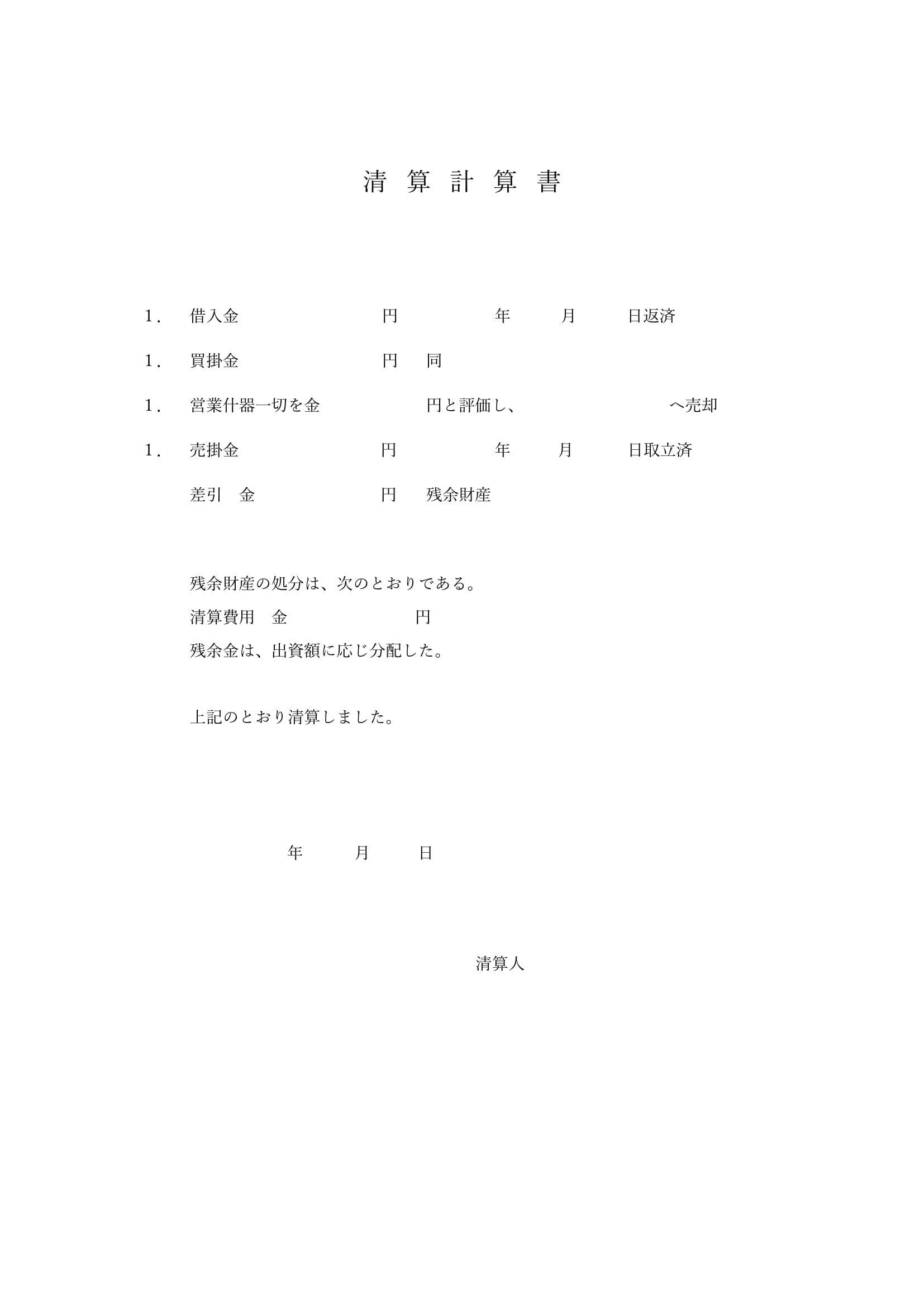 - 清算書