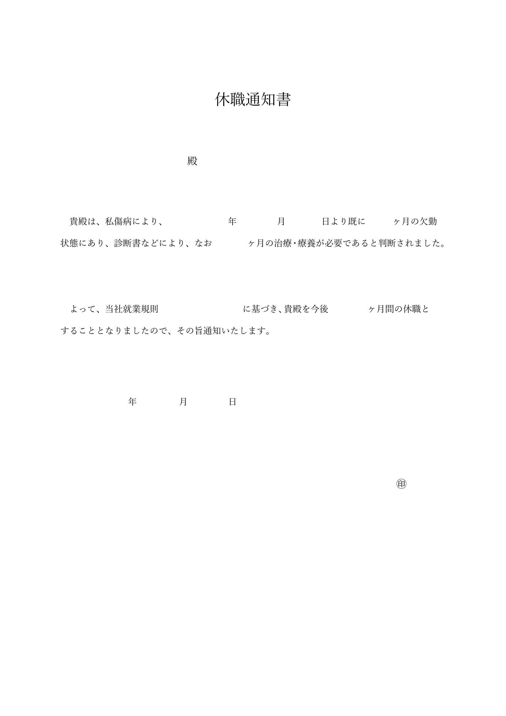 休職通知書テンプレートは記載事項が充実したフォーマット:ビジネス・シンプル 【 tm-00894.zip 】