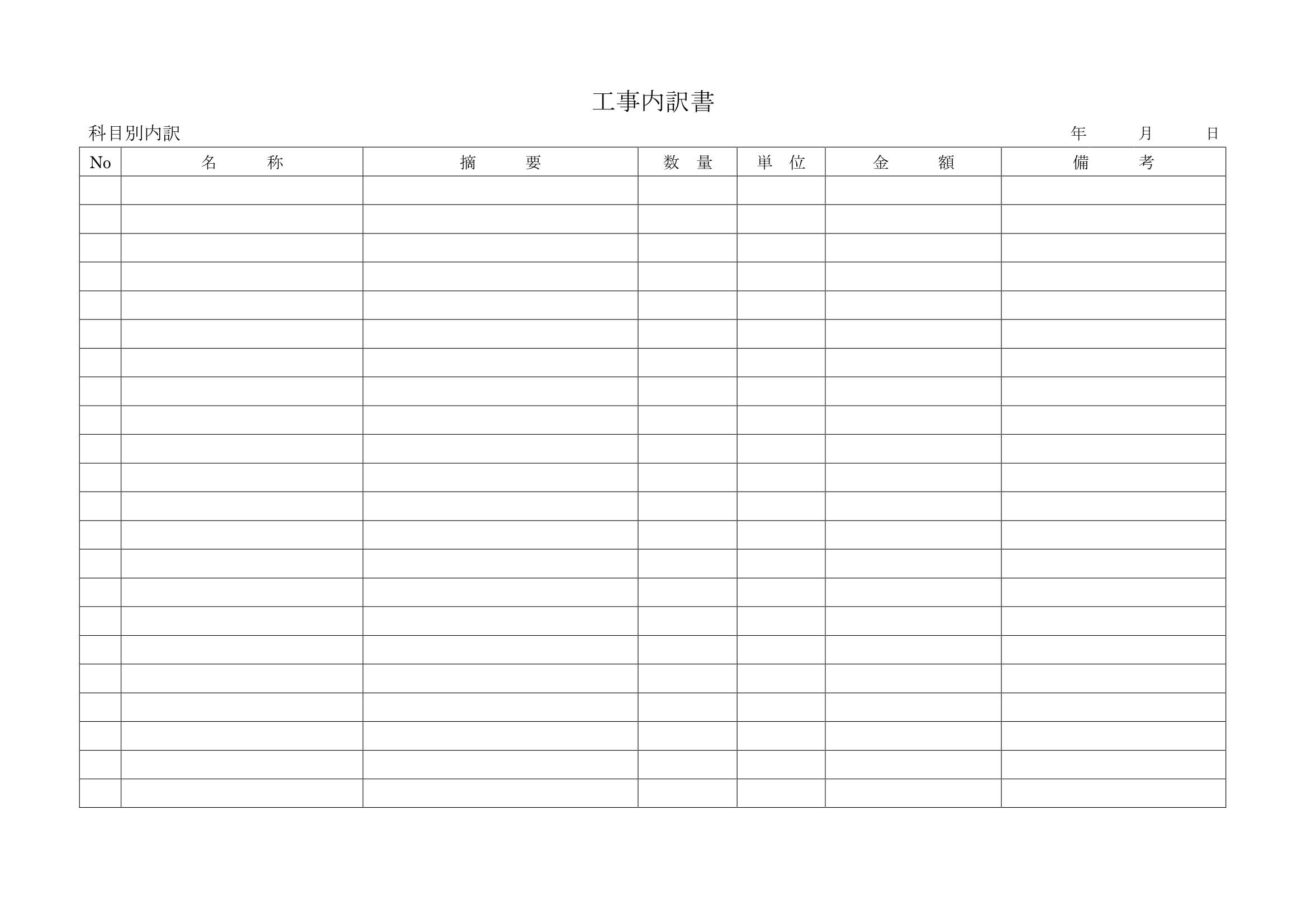 - 工事内訳書