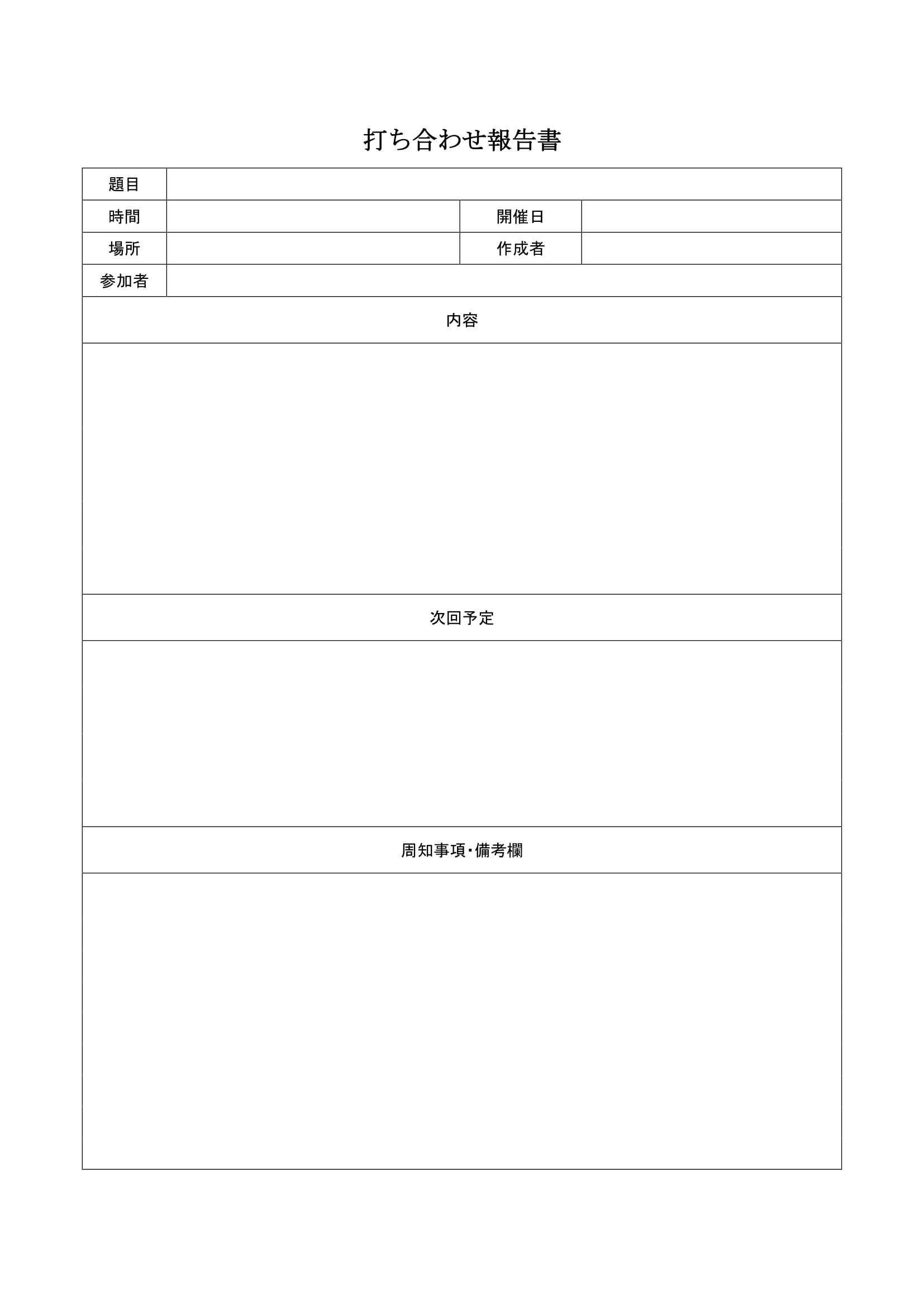 シンプルで使いやすい打ち合わせ報告書のテンプレート