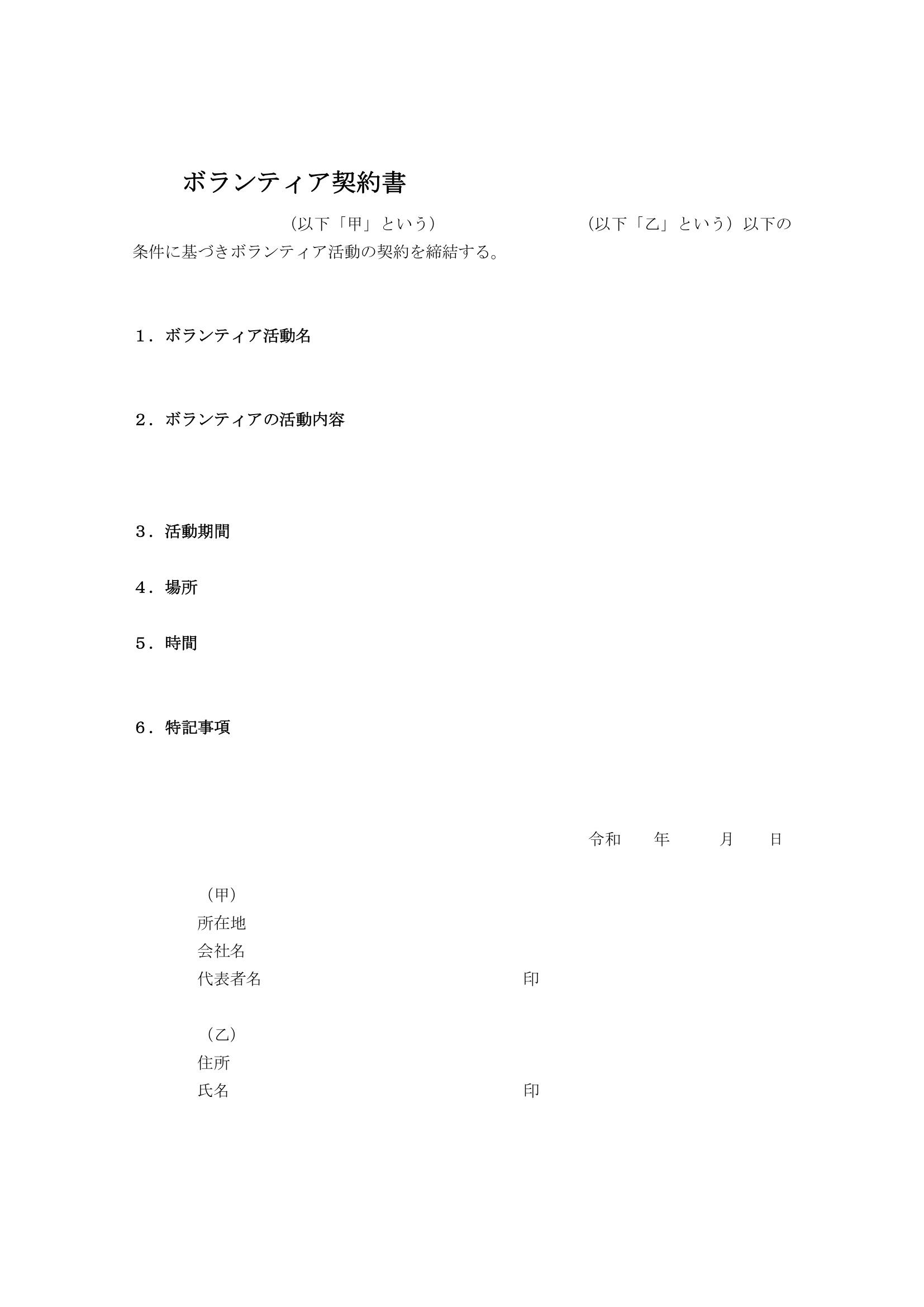 ボランティア契約書テンプレートで無償活動のトラブル防止:シンプル