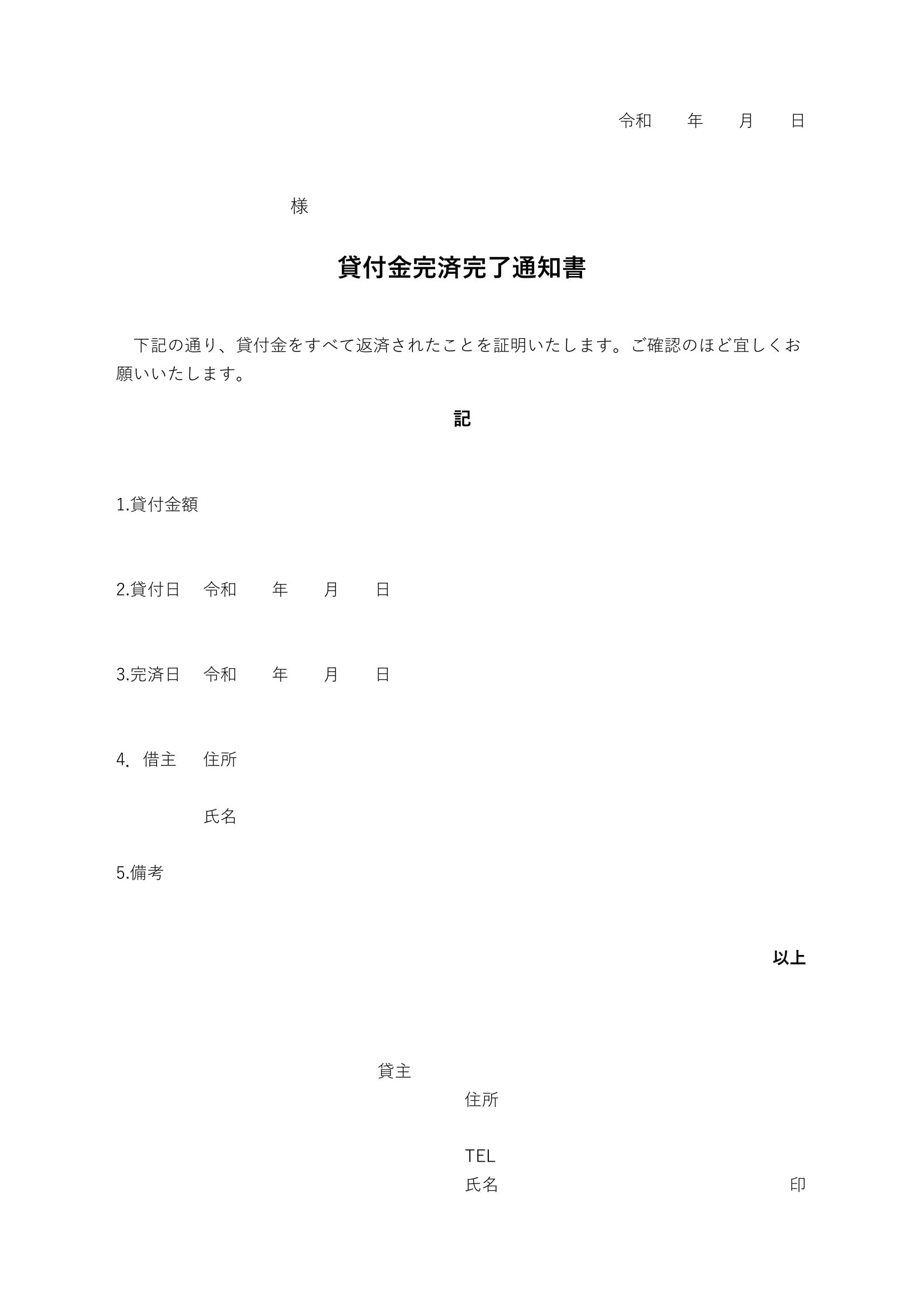 完了通知書テンプレートは貸付金の返済に:ビジネス・シンプル