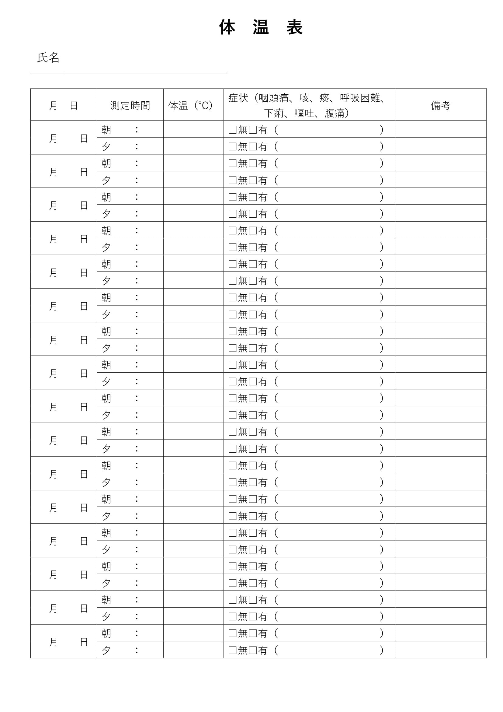 体温表テンプレートは看護や子供の健康管理に:ビジネス・シンプル 【 tm-00934.zip 】
