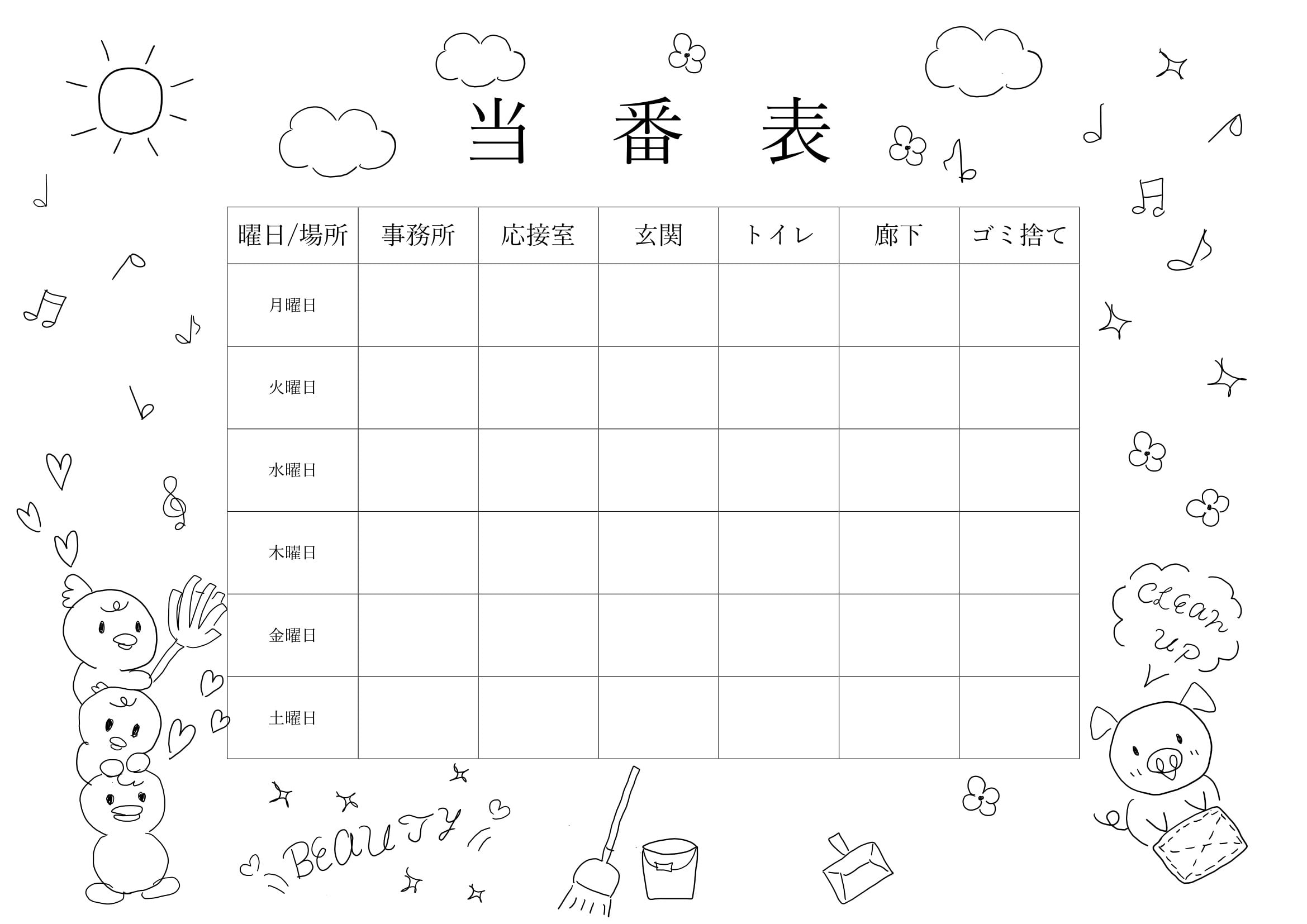 シンプルで使いやすい当番表のテンプレート