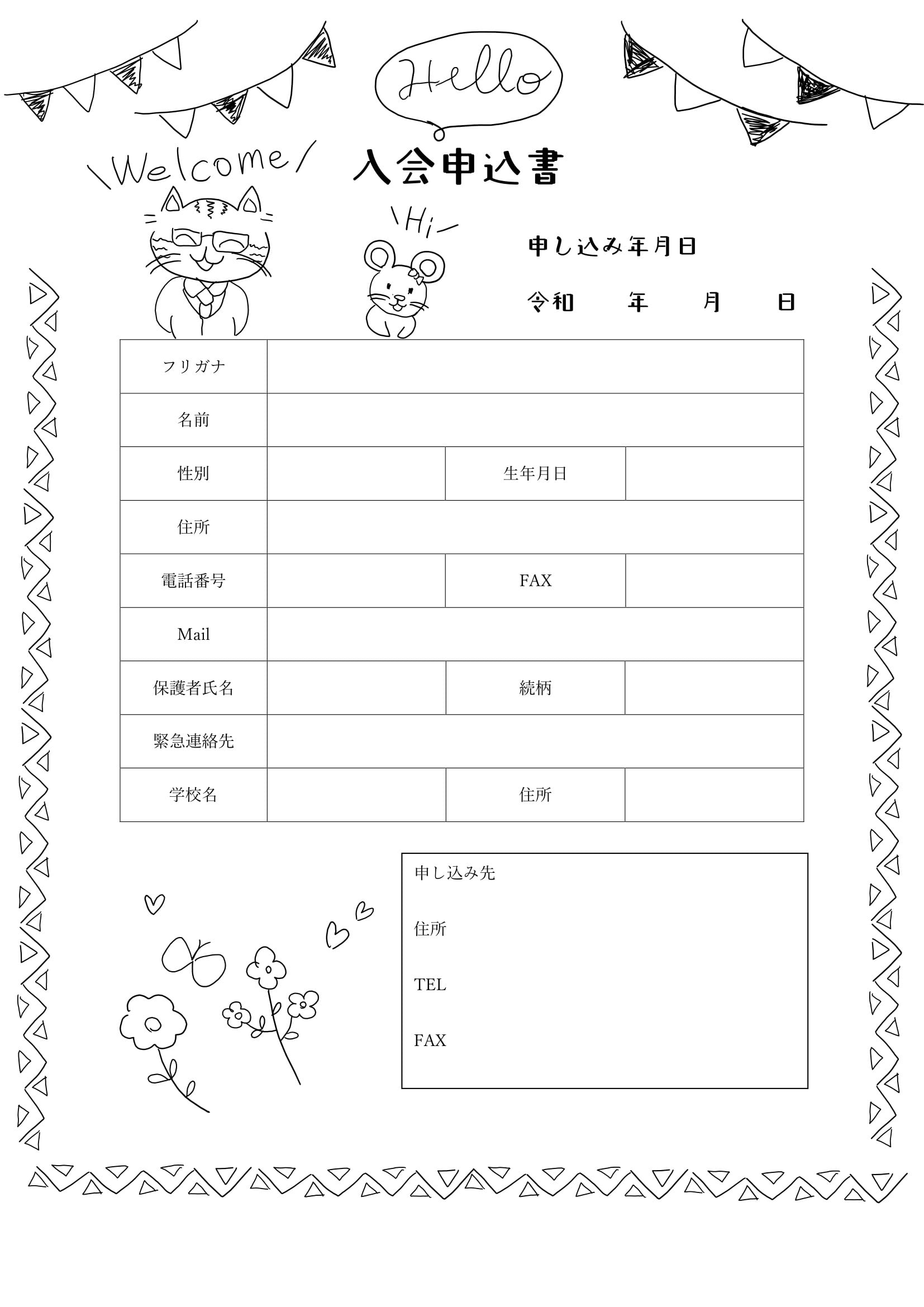 シンプルで使いやすい入会申込書のテンプレート