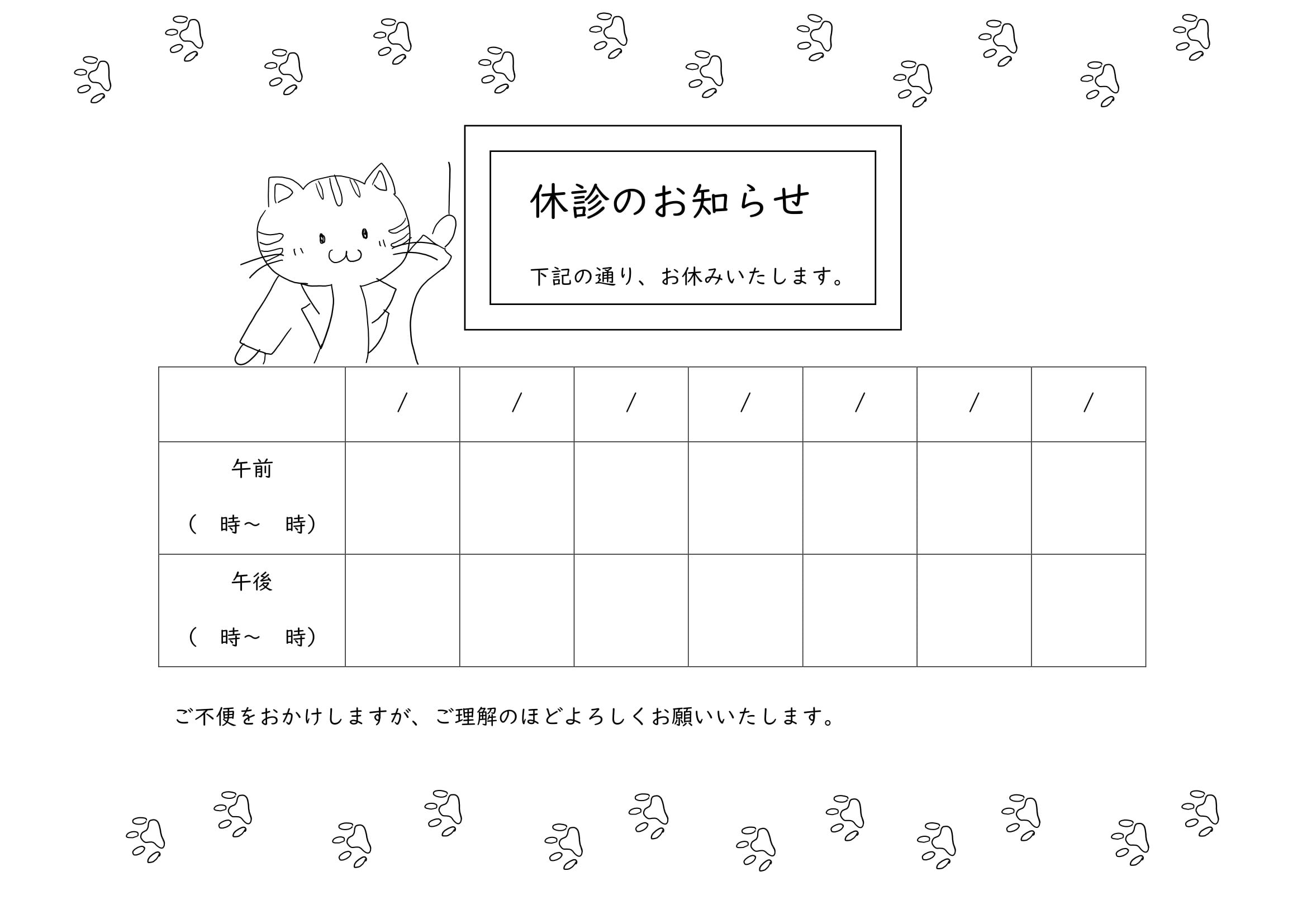 シンプルで使いやすい休診のお知らせのテンプレート