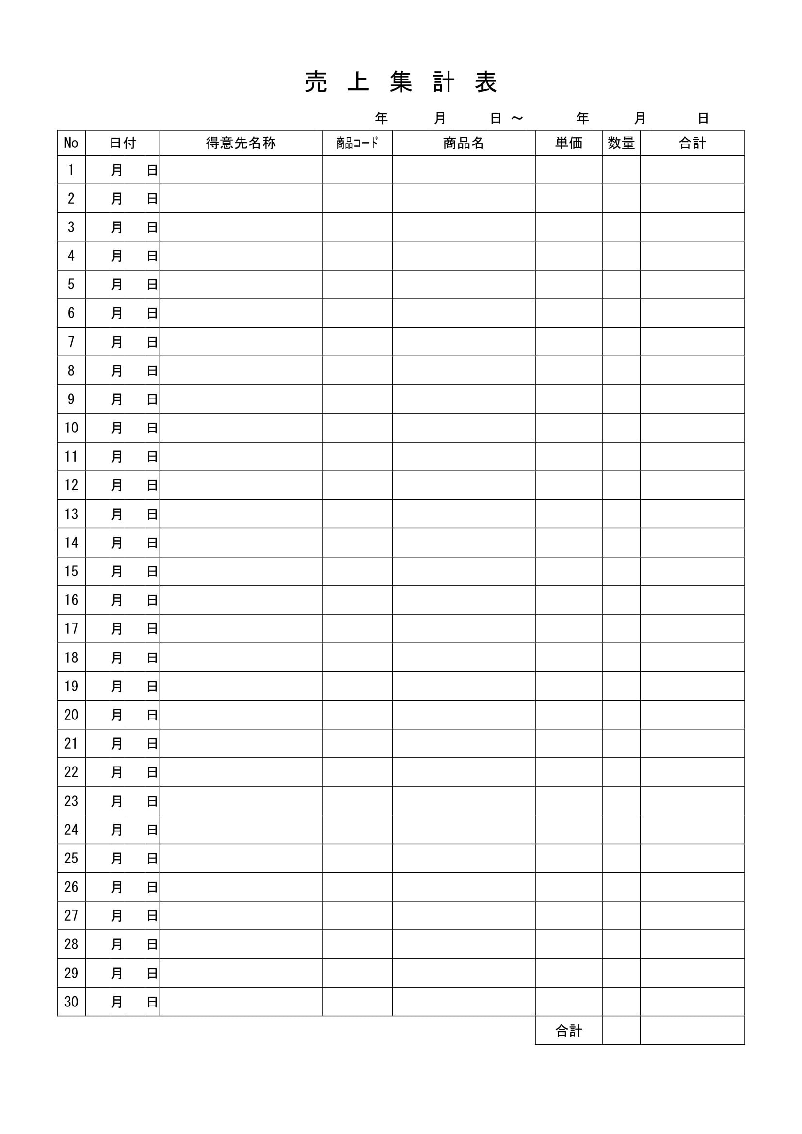 売上集計表テンプレートは見やすいシンプルなドキュメント作り方がわかりやすい:ビジネス 【 tm-00994.zip 】