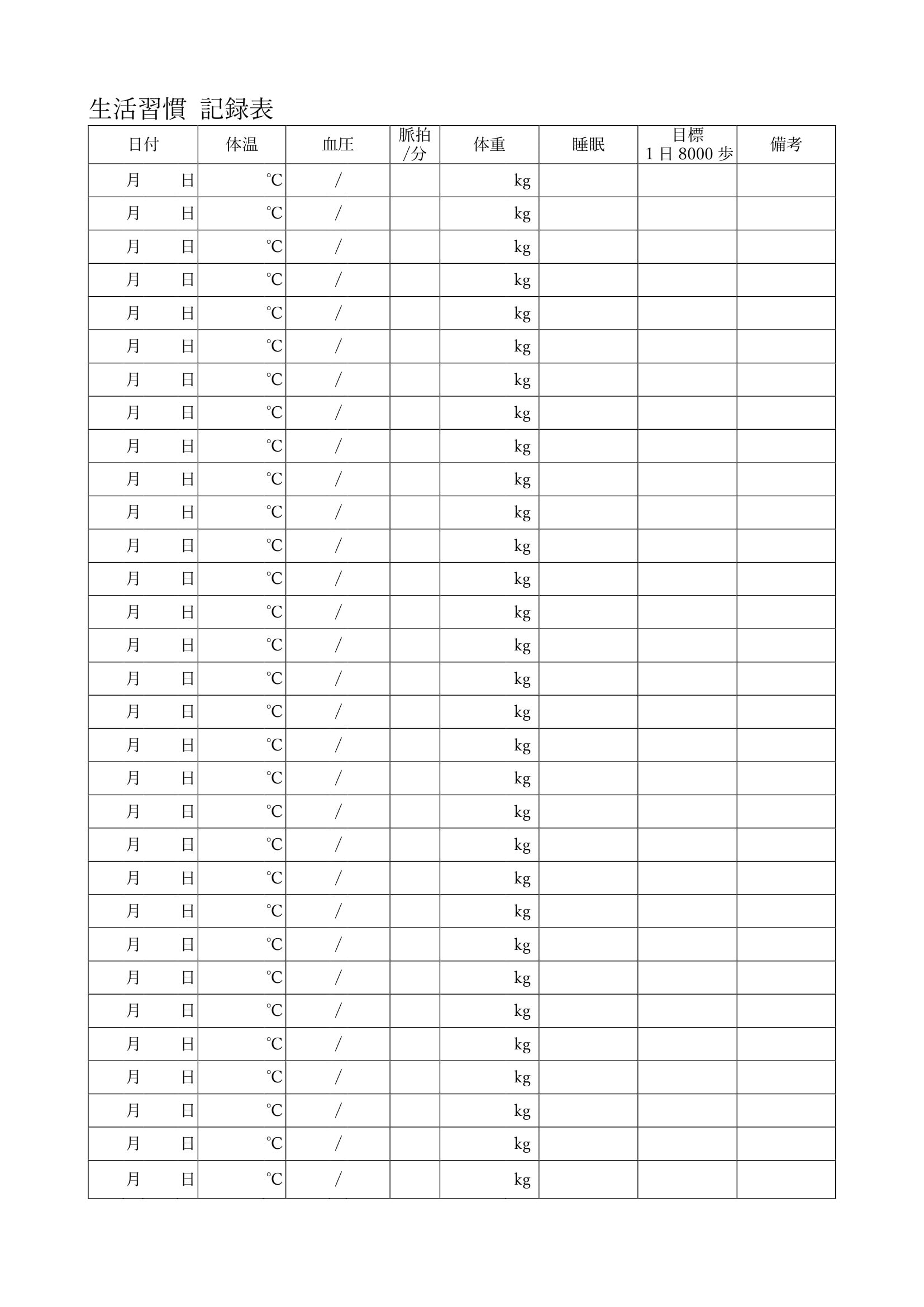 - 生活習慣記録表