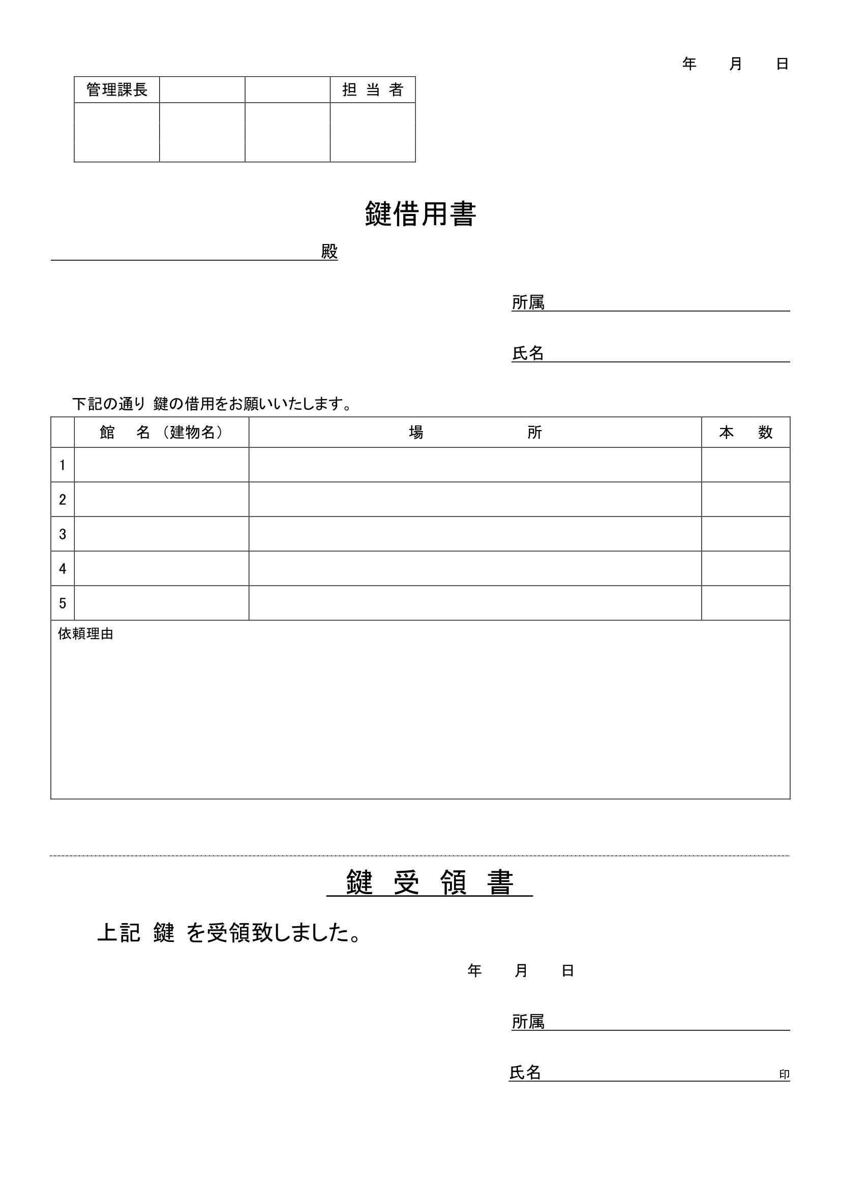 鍵借用書テンプレートは返却チェックがやりやすい様式:ビジネス・シンプル 【 tm-01020.zip 】