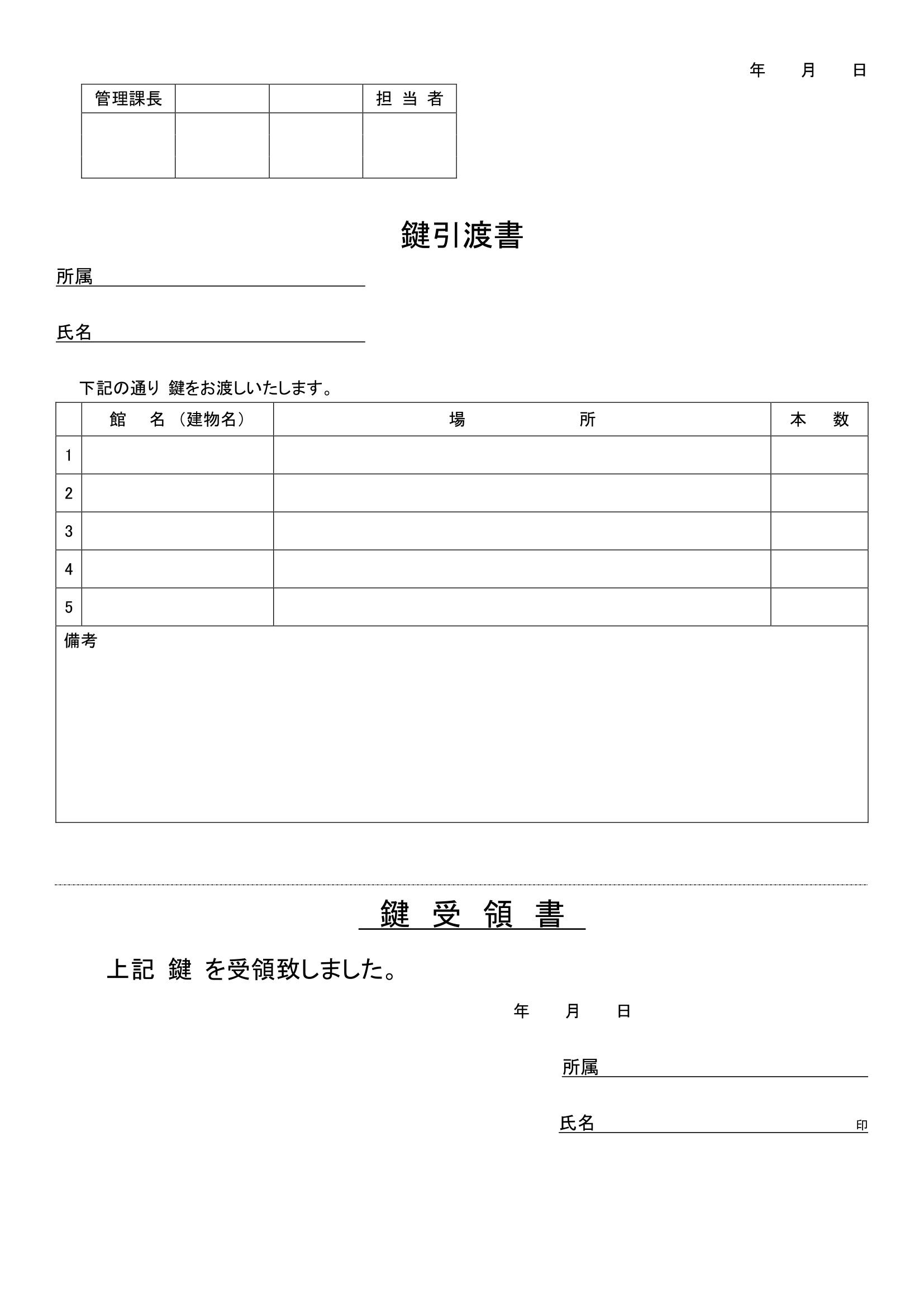 - 鍵引き渡し書