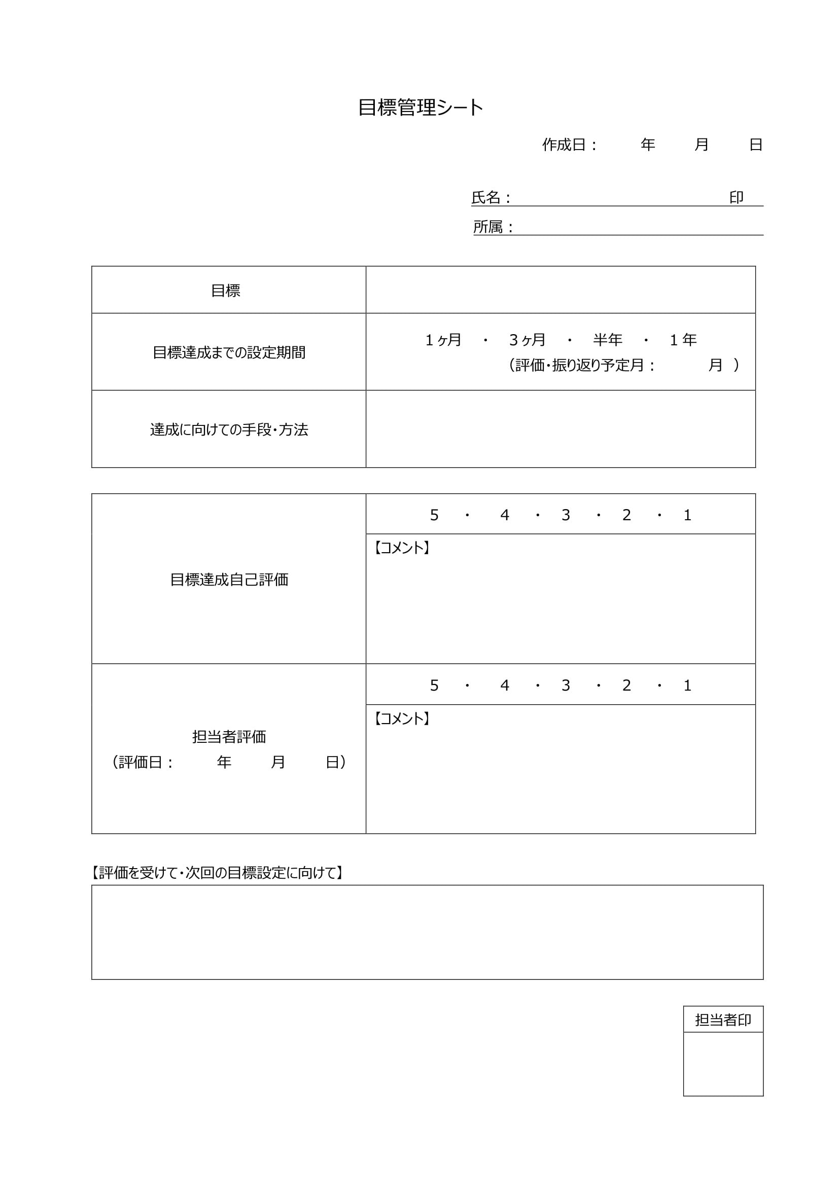 目標管理シートテンプレートで本人コメント・上司コメントをチェック:ビジネス・シンプル 【 tm-01035.zip 】