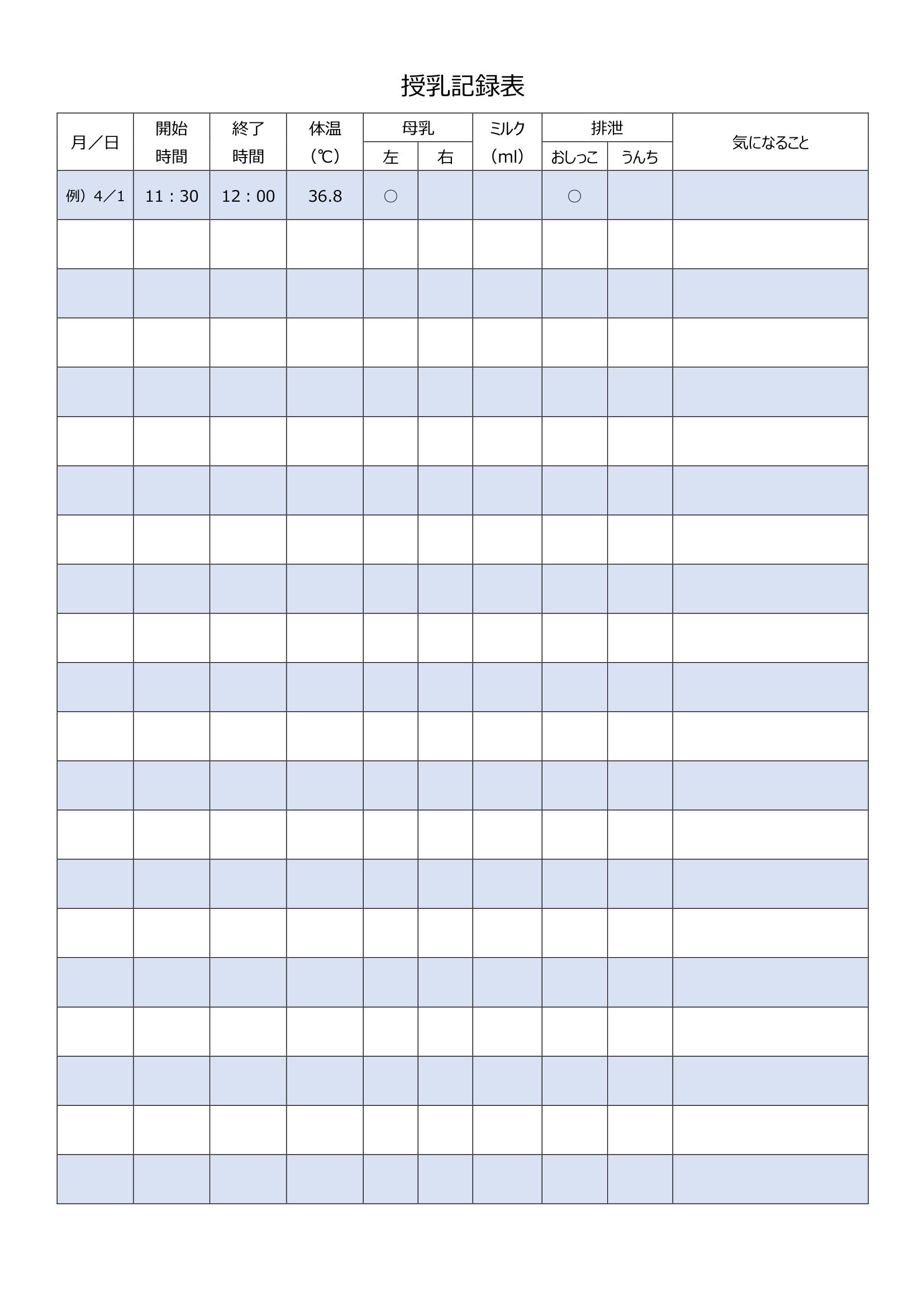 授乳記録表テンプレートを赤ちゃんの子育てに使おう:ビジネス・シンプル 【 tm-01038.zip 】
