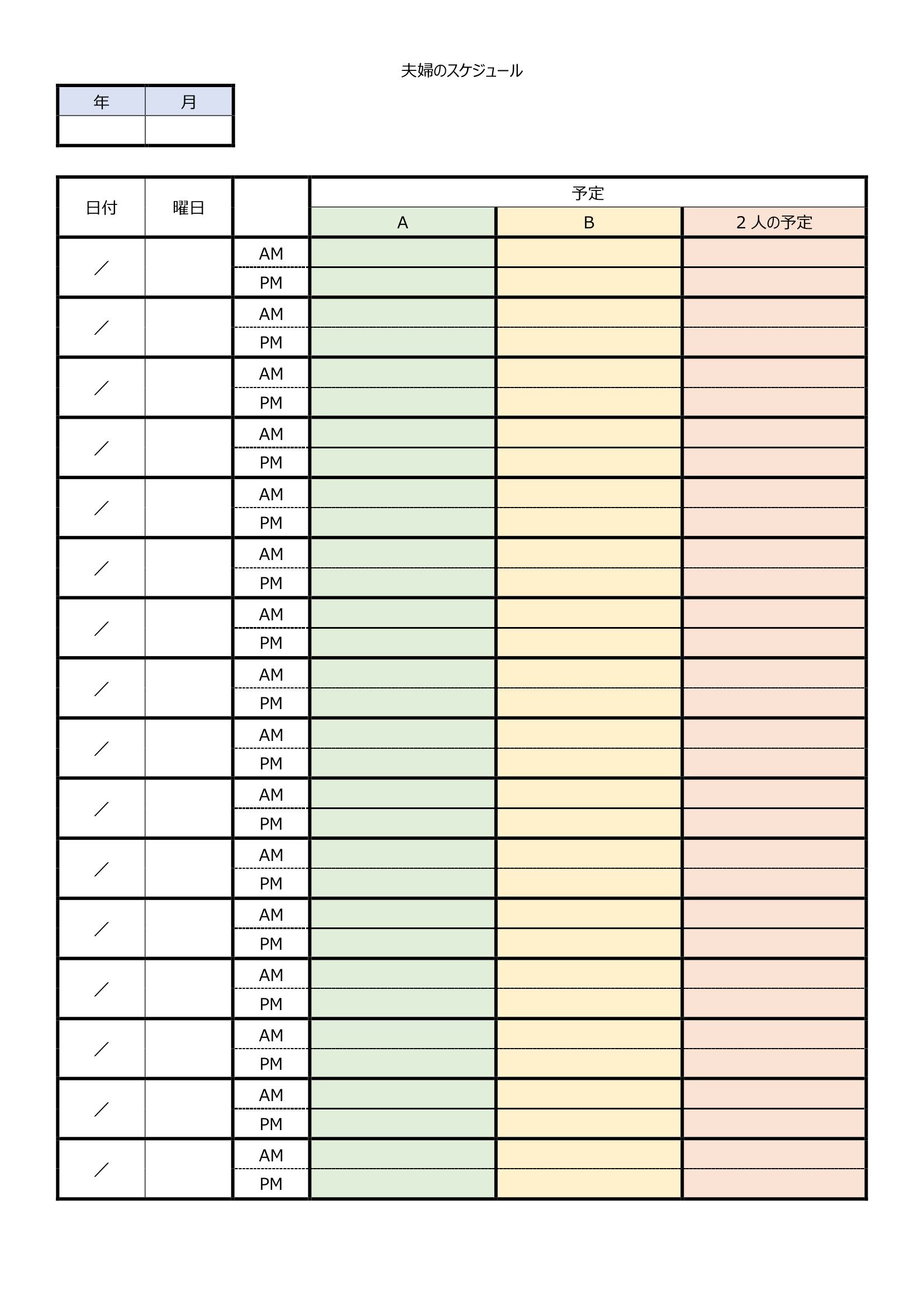 シンプルで使いやすい夫婦のスケジュール表のテンプレート