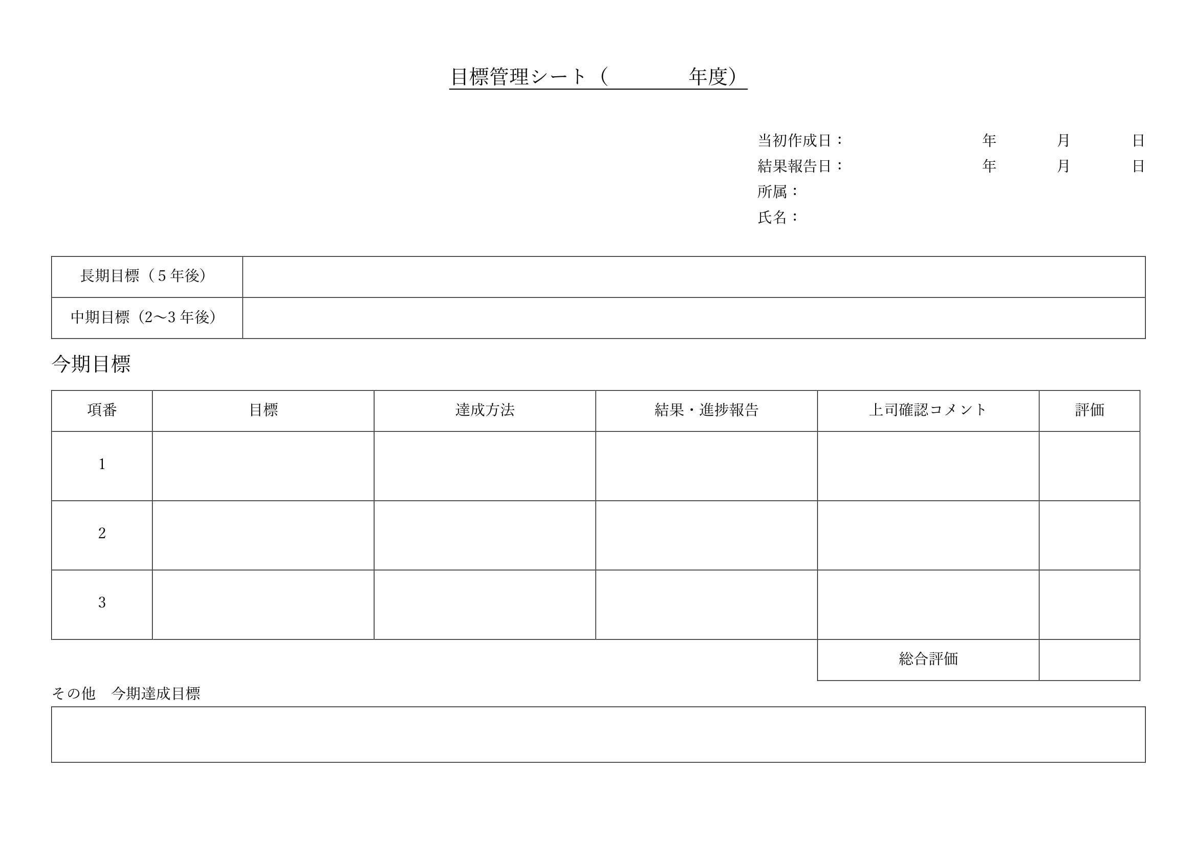 シンプルで使いやすい目標管理シートのテンプレート