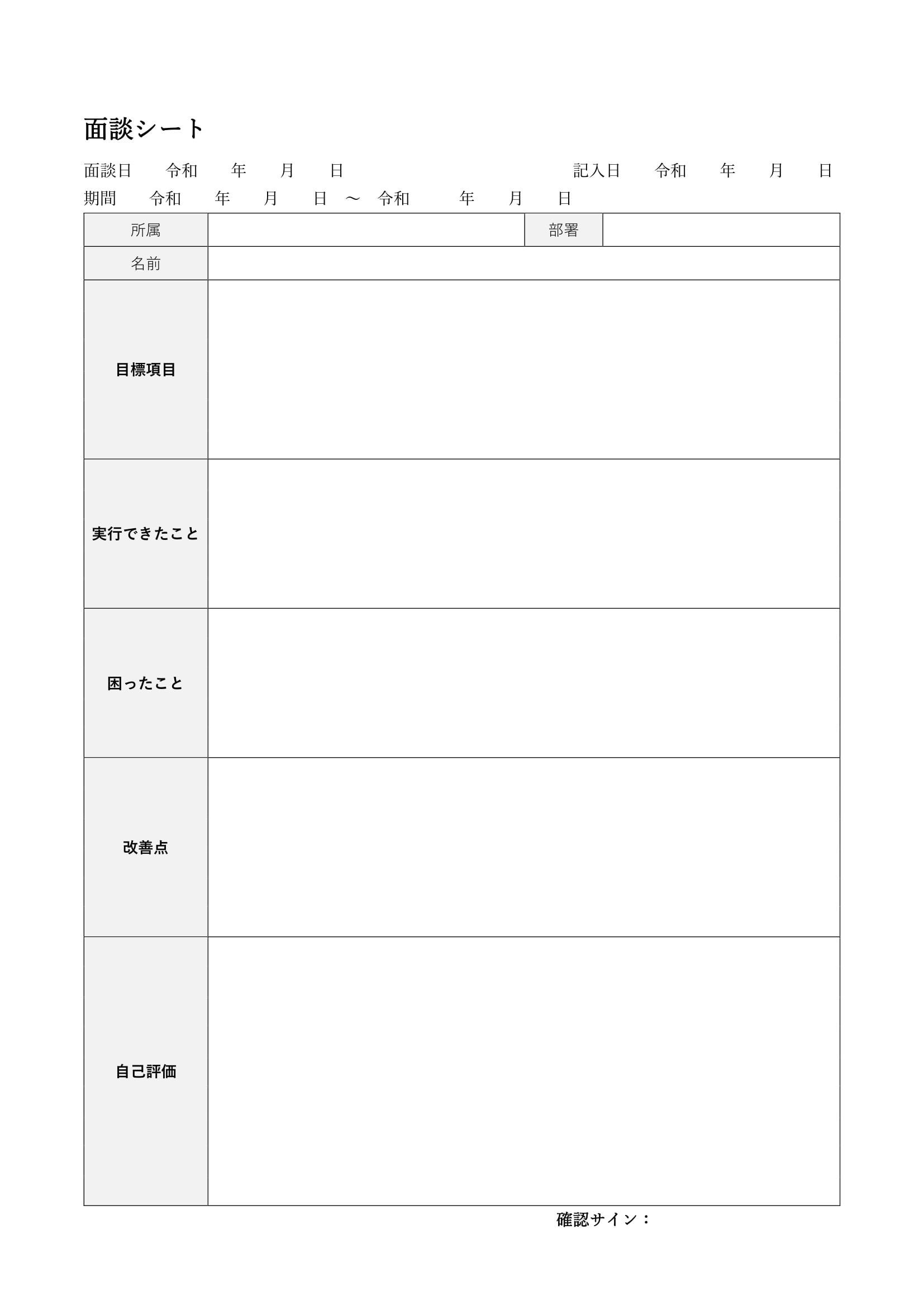 面談シートテンプレートで目的を書き出して部下と共有しよう:ビジネス・シンプル 【 tm-01050.zip 】
