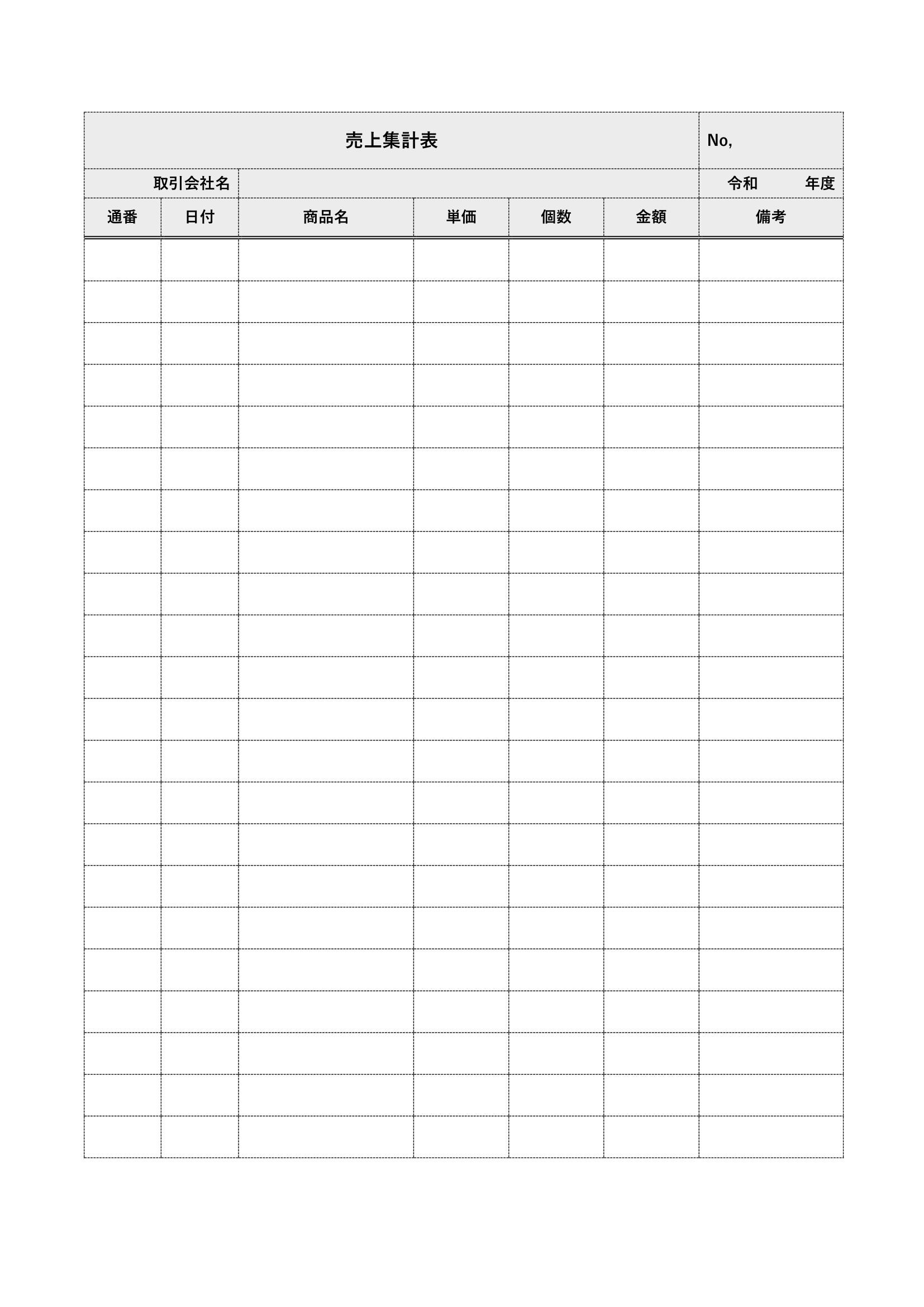 売上集計表を分かりやすく整理したい方に向けて、実務で使いやすいテンプレートをご紹介します。ExcelやWordで編集できる形式のため、日々の売上や金額を効率よく記録できます。A4サイズで見やすいレイアウトに整えられており、全体の流れを一目で把握しやすい構成です。PDFとして出力すれば印刷してそのまま活用できます。