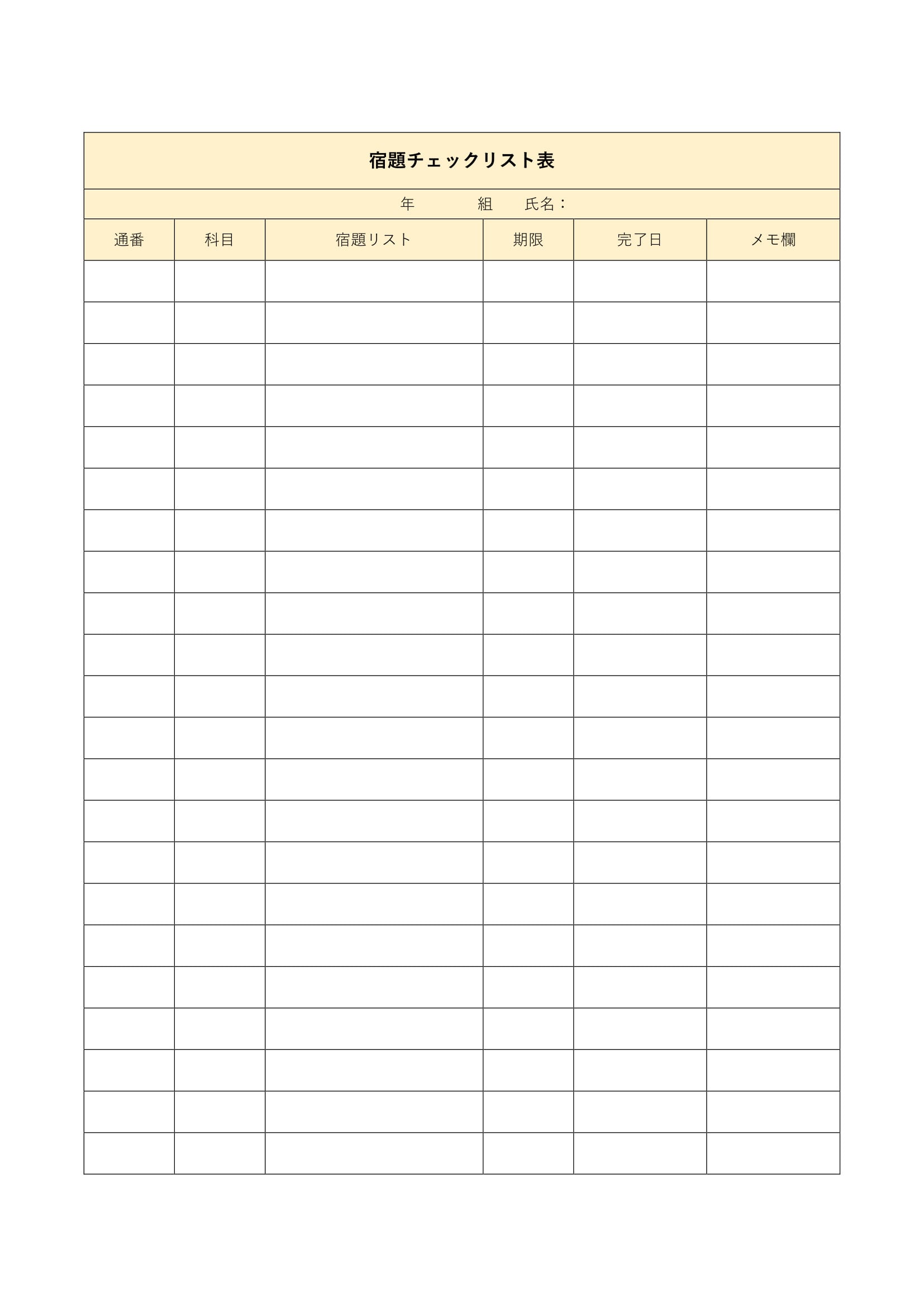シンプルで使いやすい宿題チェックリストのテンプレート
