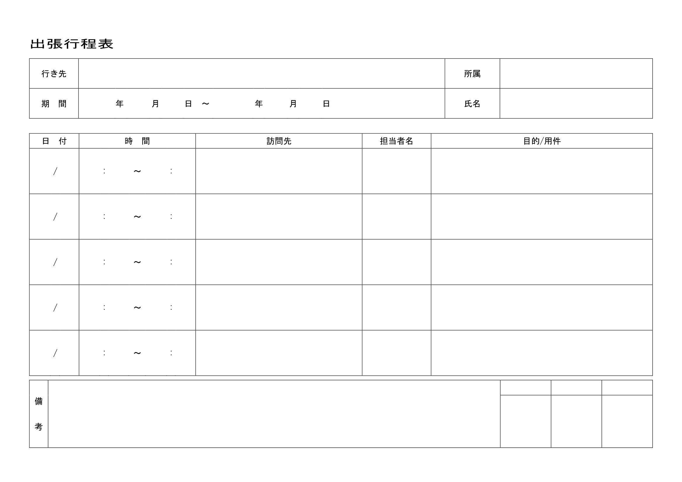 行程表テンプレートで出張の予定を整理整頓:ビジネス・シンプル
