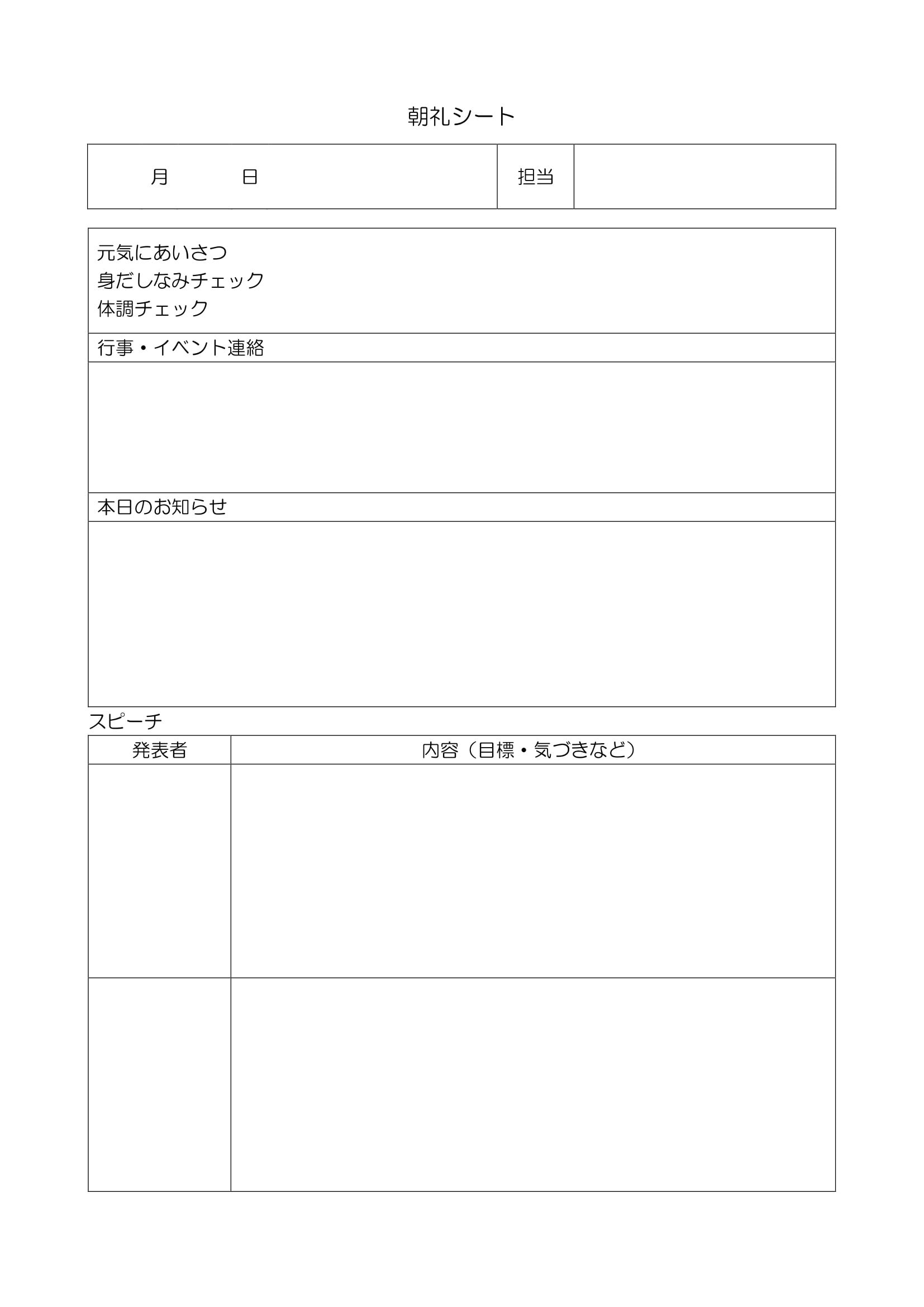 朝礼シートテンプレートはアパレル業に役立つ:ビジネス・シンプル