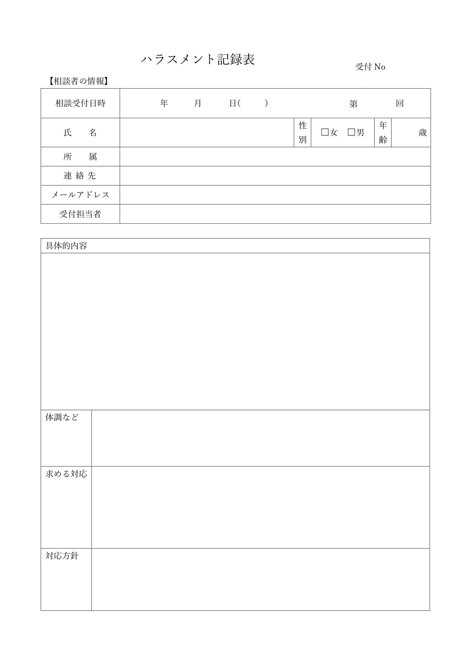 シンプルで使いやすいハラスメント記録表のテンプレート