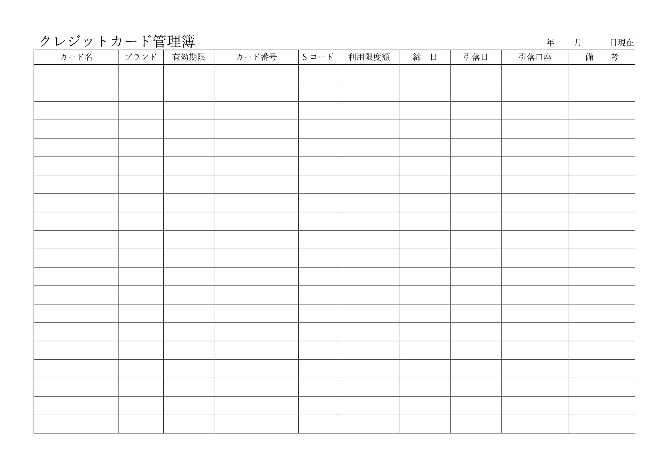 - クレジットカード管理簿