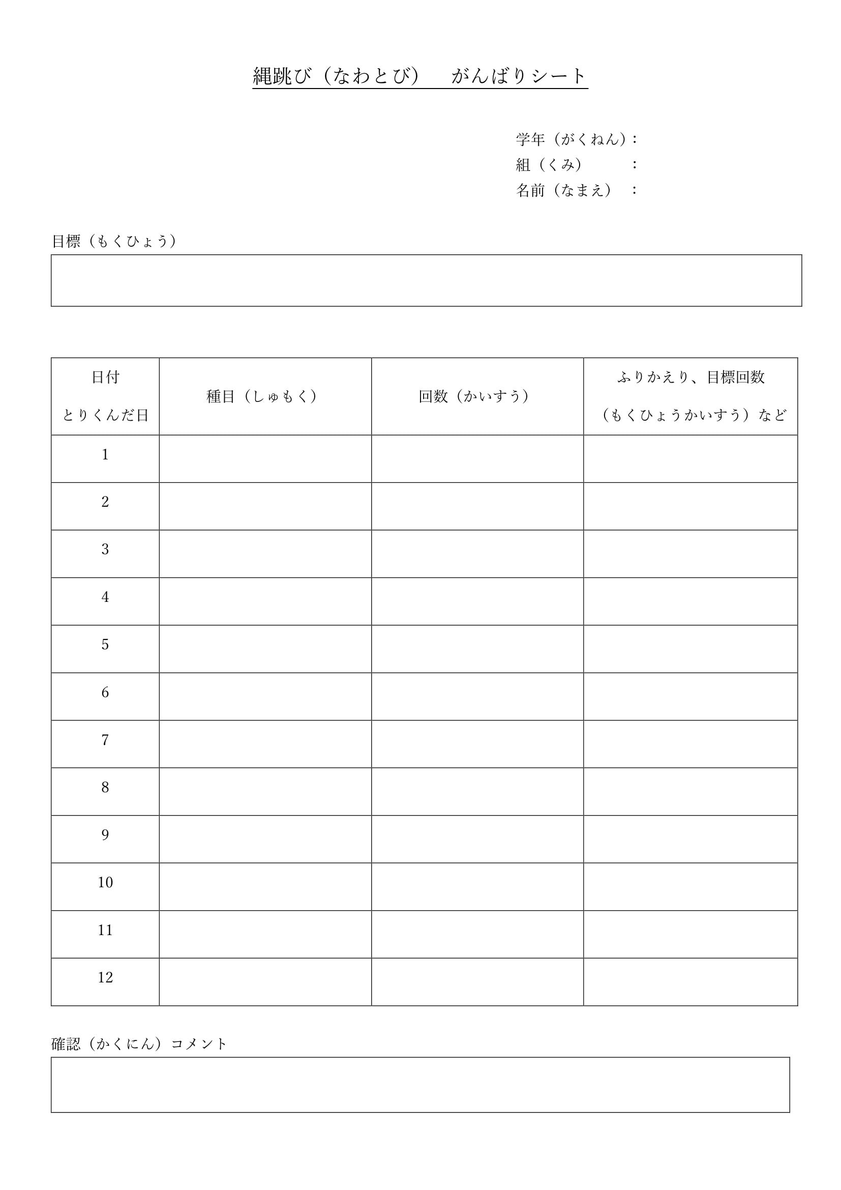 がんばりシートテンプレートで小学生の縄跳びモチベUP:ビジネス・シンプル 【 tm-01105.zip 】