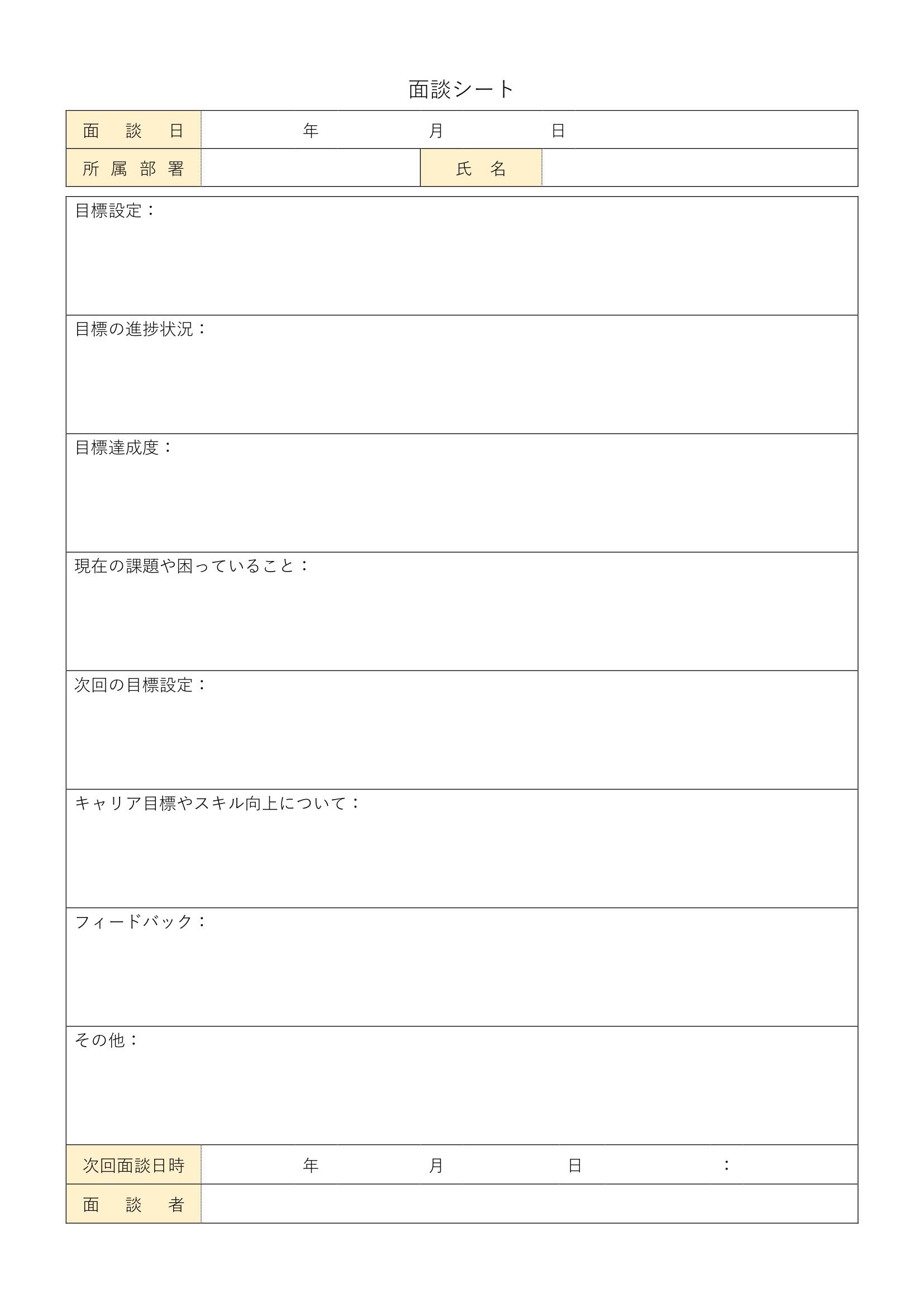 シンプルで使いやすい面談シートのテンプレート