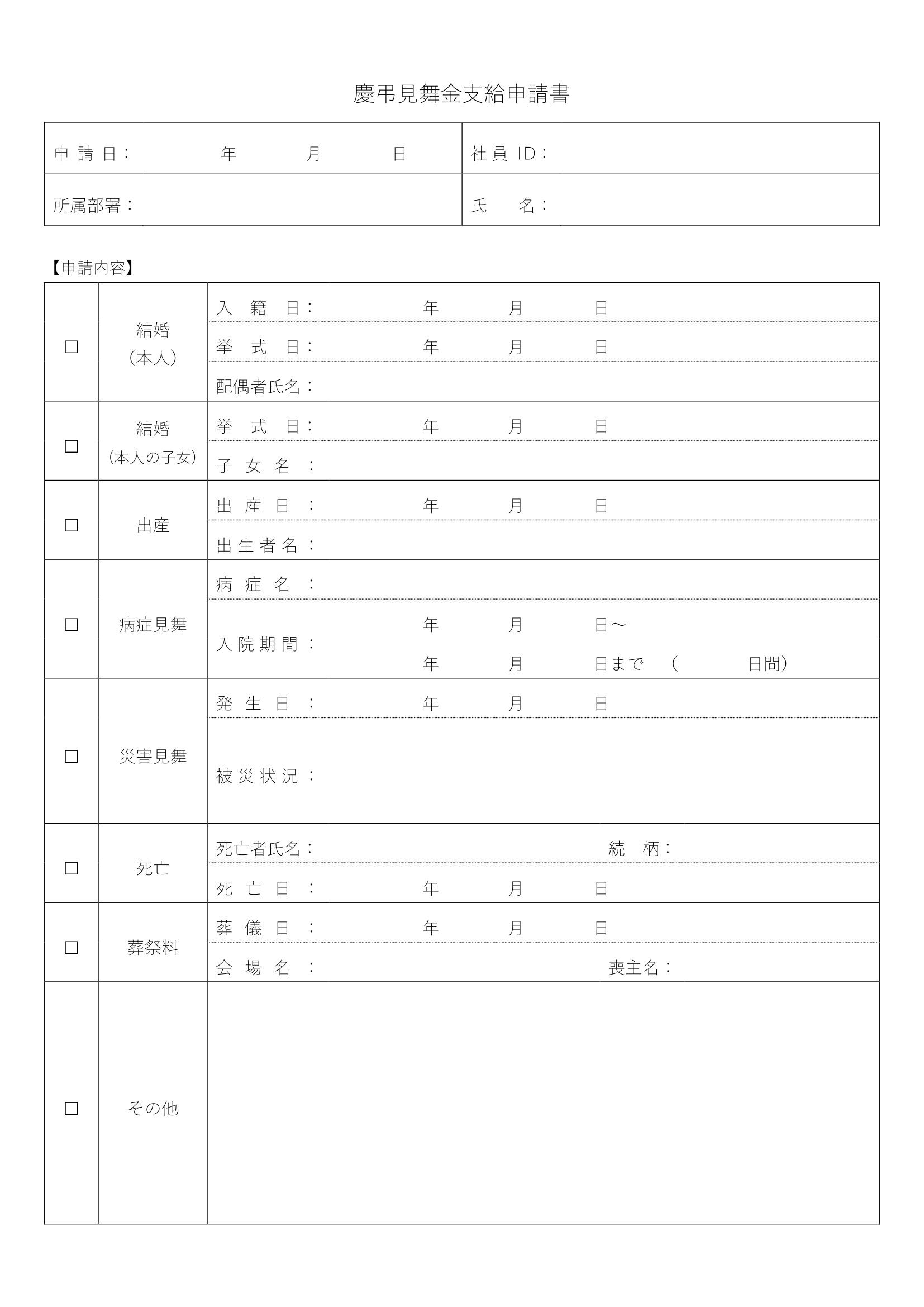 シンプルで使いやすい慶弔見舞金支給申請書のテンプレート
