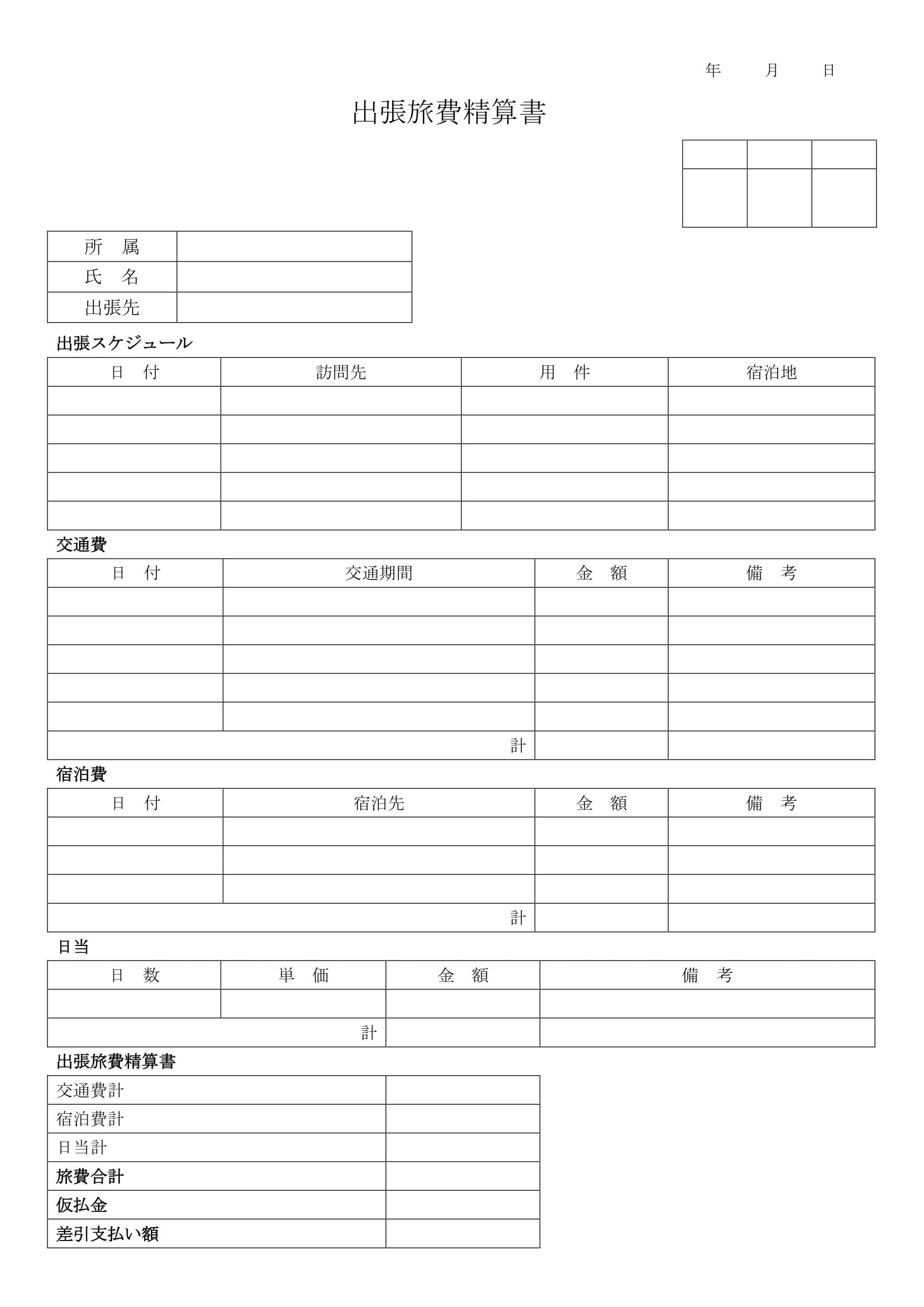 出張旅費精算書テンプレートは日当などを記入しやすい:ビジネス・シンプル 【 tm-01162.zip 】