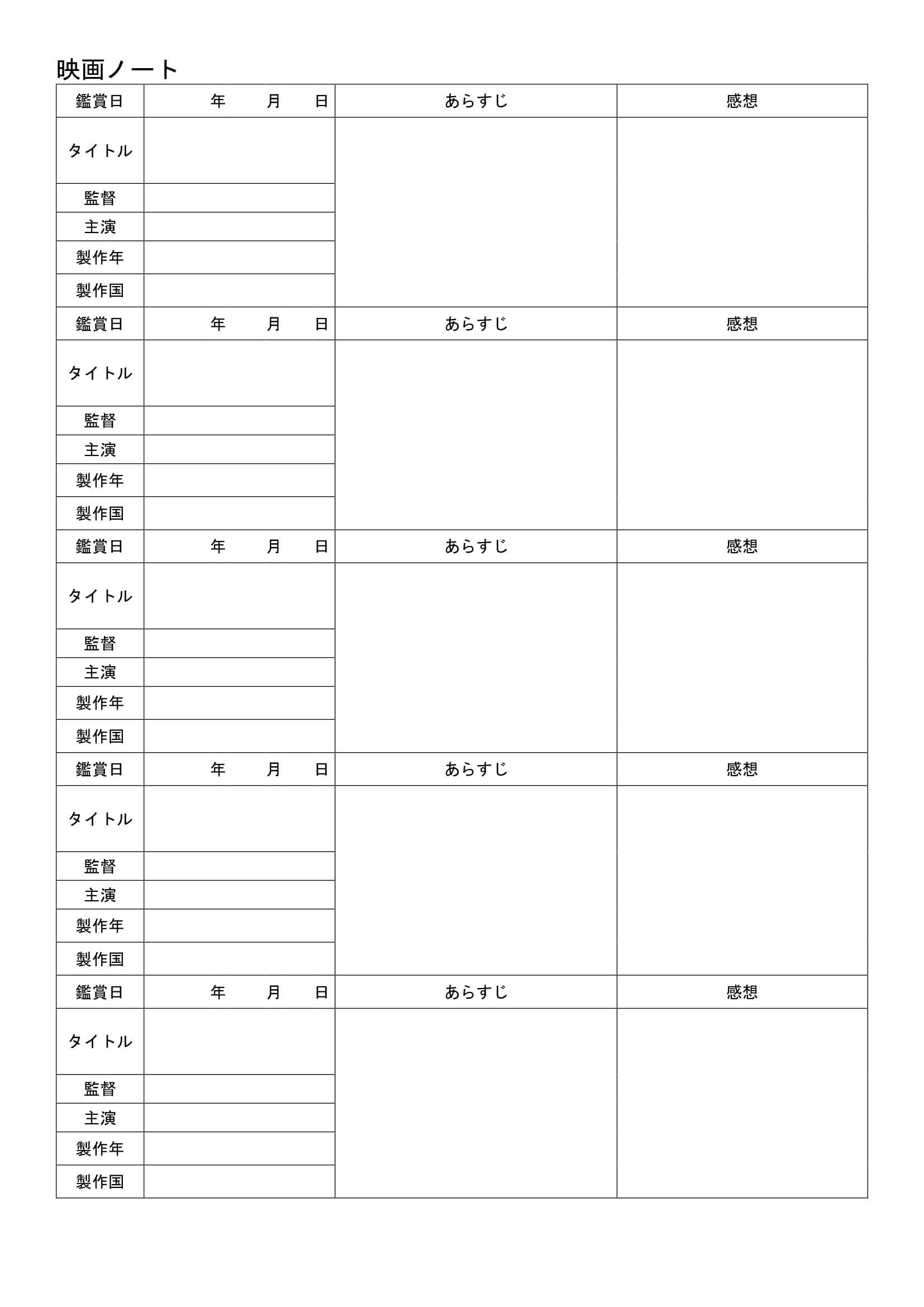 映画ノートテンプレートは自作におすすめ:ビジネス・シンプル 【 tm-01163.zip 】