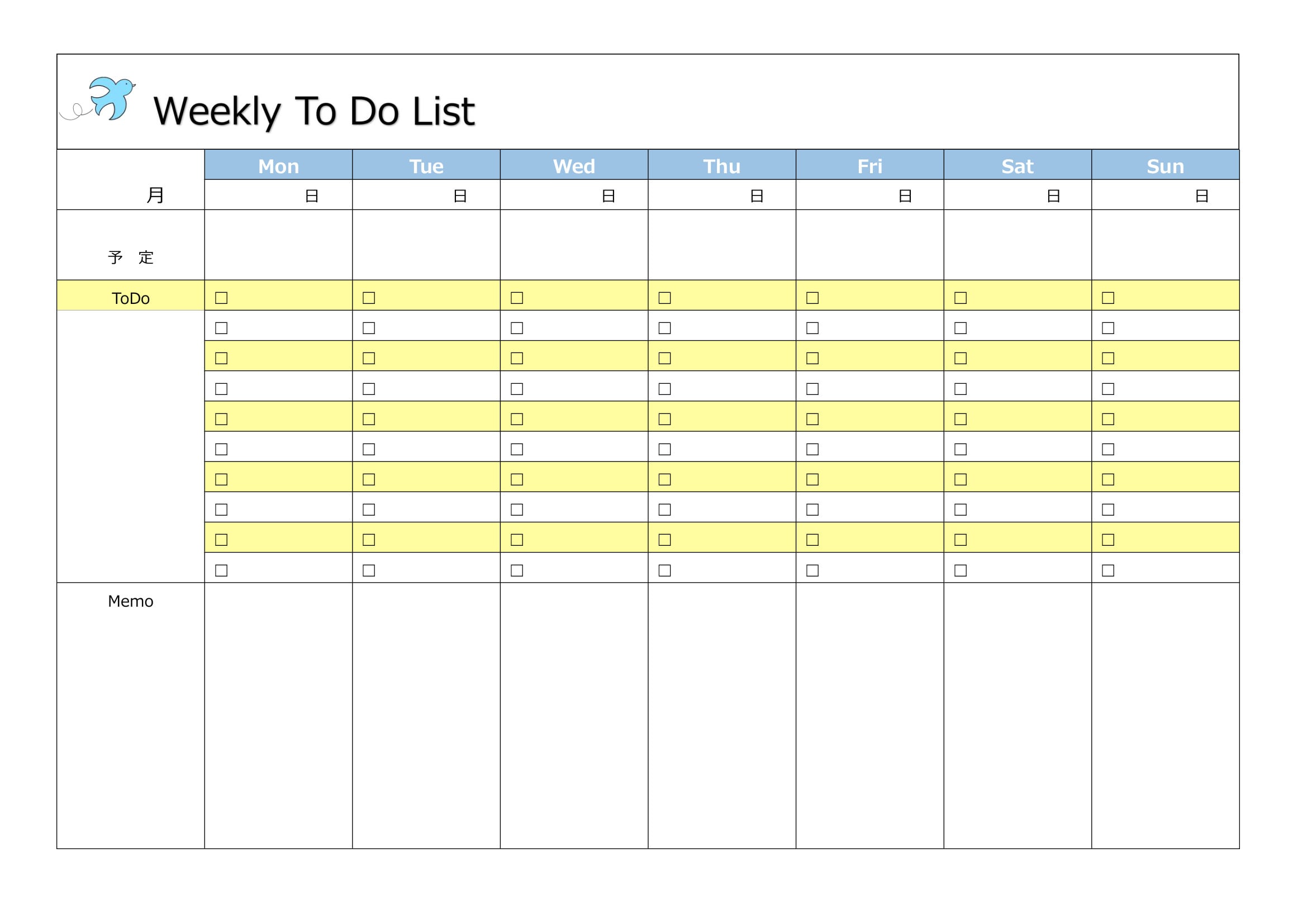 シンプルで使いやすい週間ToDoリストのテンプレート