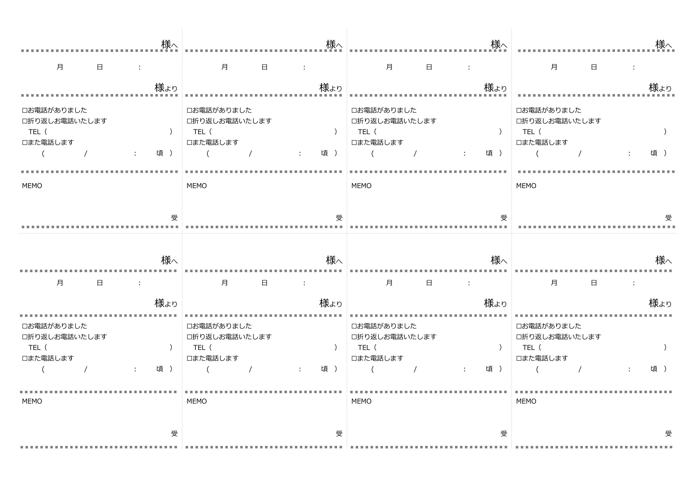 シンプルで使いやすい電話メモ8分割のテンプレート