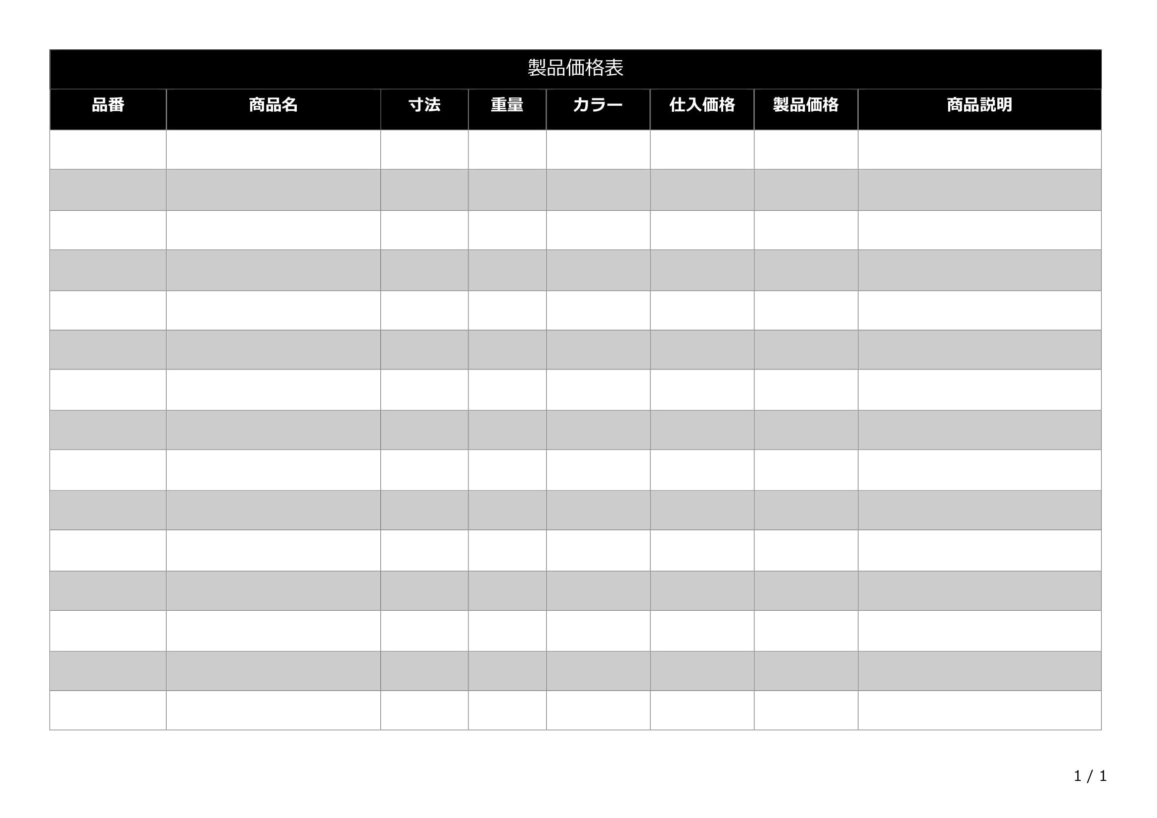 製品価格表テンプレートは内訳の確認がやりやすい:ビジネス・シンプル 【 tm-01219.zip 】