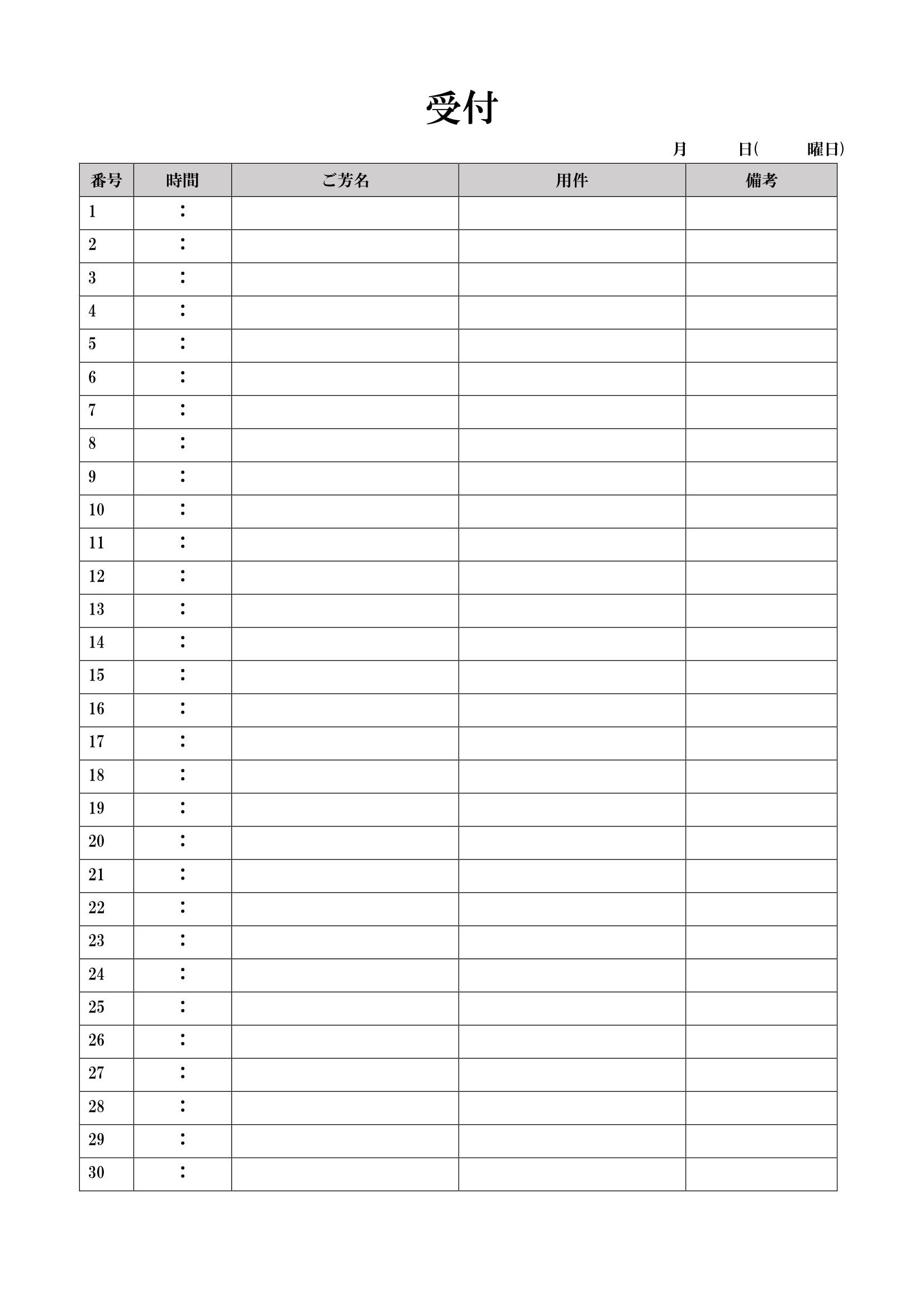 シンプルで使いやすい受付記帳用紙のテンプレート