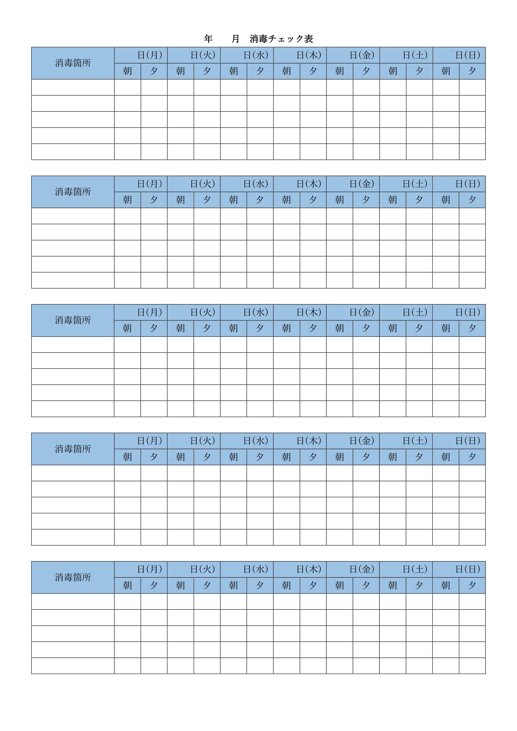 消毒チェック表テンプレートで手指を常に清潔に:ビジネス・シンプル 【 tm-01244.zip 】