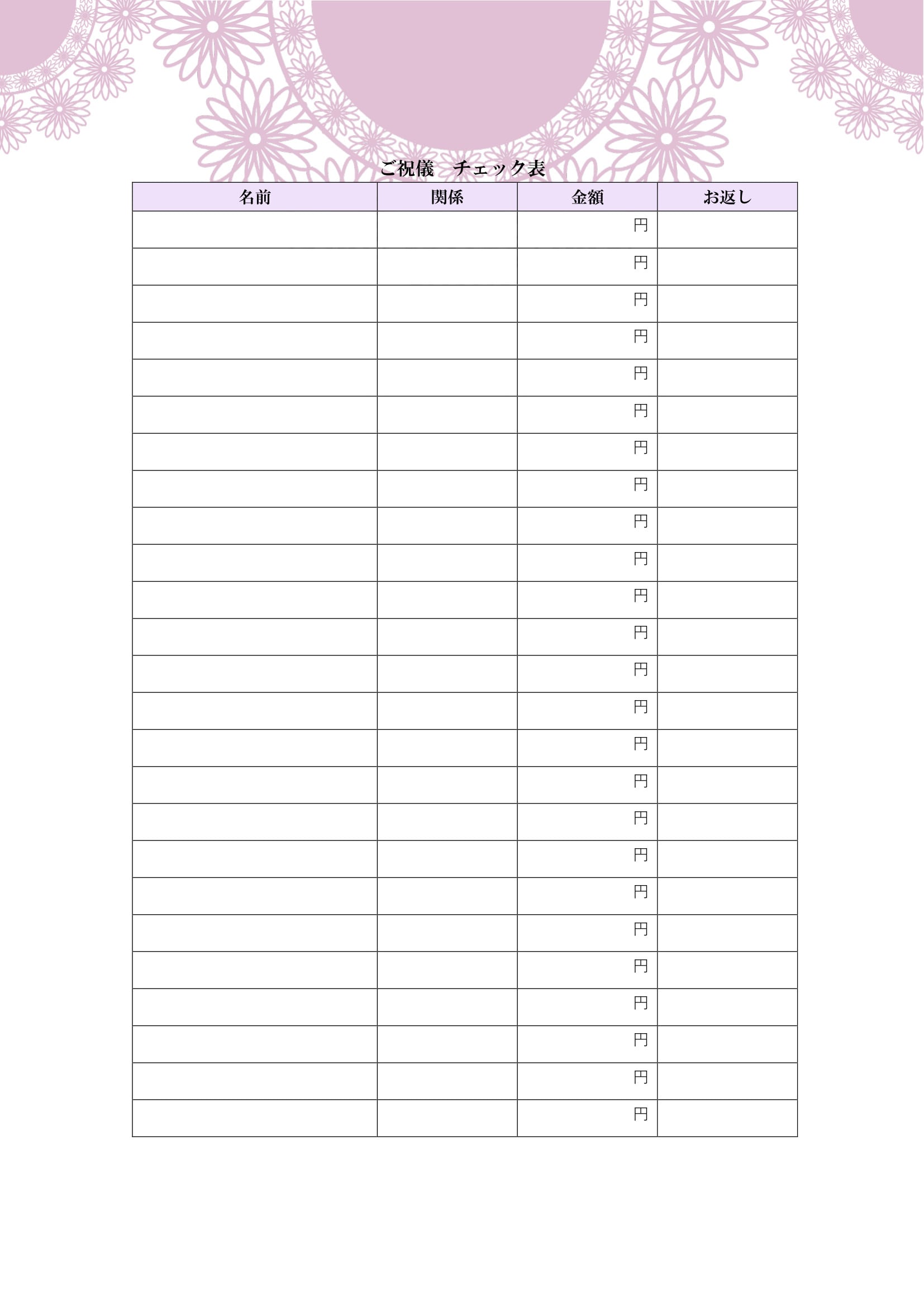 シンプルで使いやすいご祝儀チェック表のテンプレート