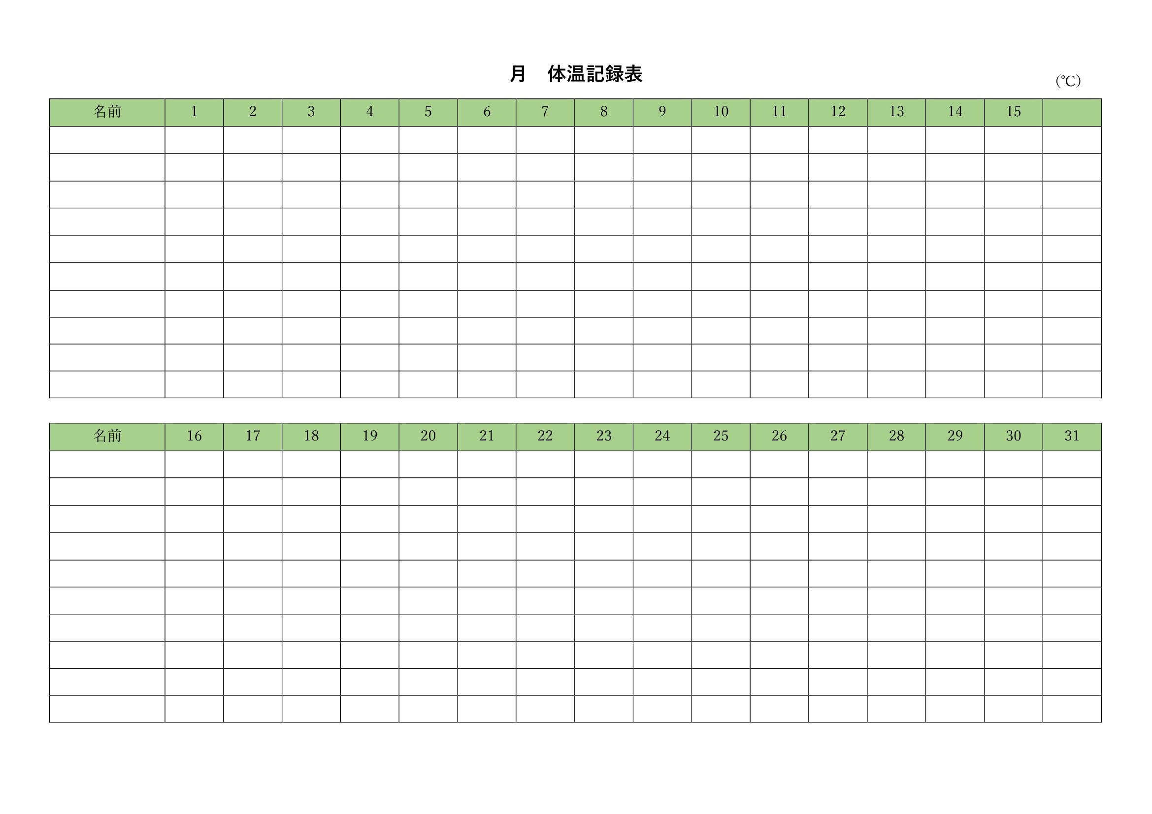 検温表テンプレートを定期的につけて体調管理に繋げよう:ビジネス・シンプル 【 tm-01247.zip 】