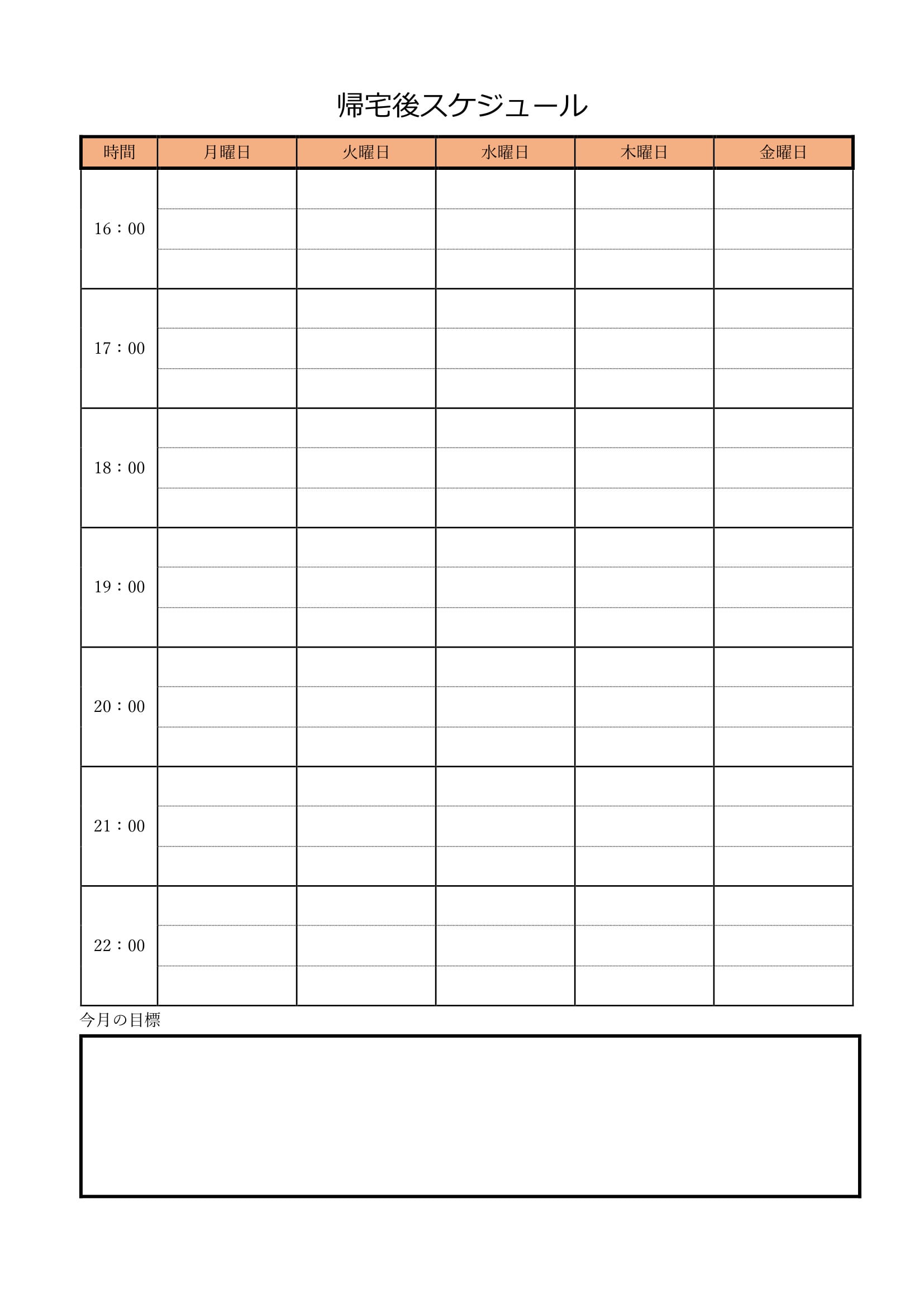 中学生の帰宅後スケジュール表テンプレートで平日を有意義に:ビジネス・シンプル