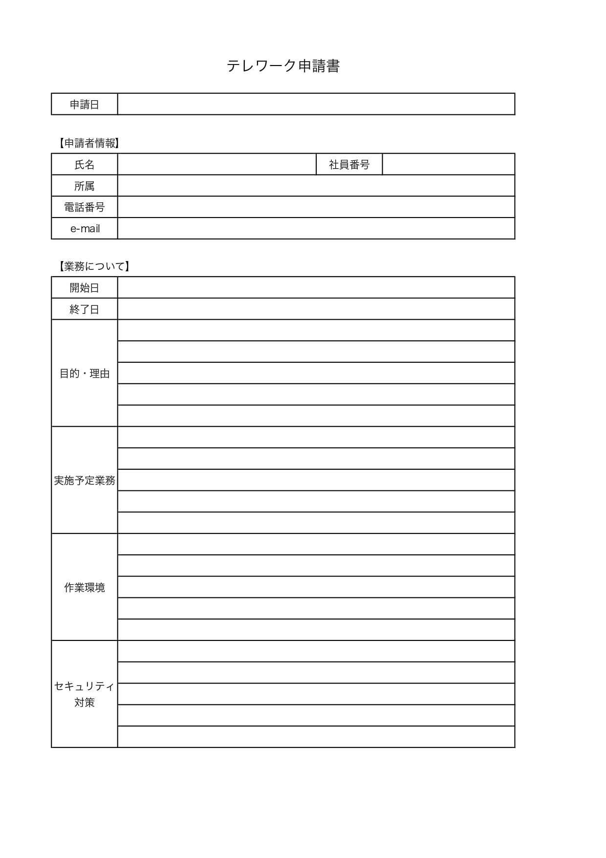 シンプルで使いやすい在宅勤務申請理由書のテンプレート