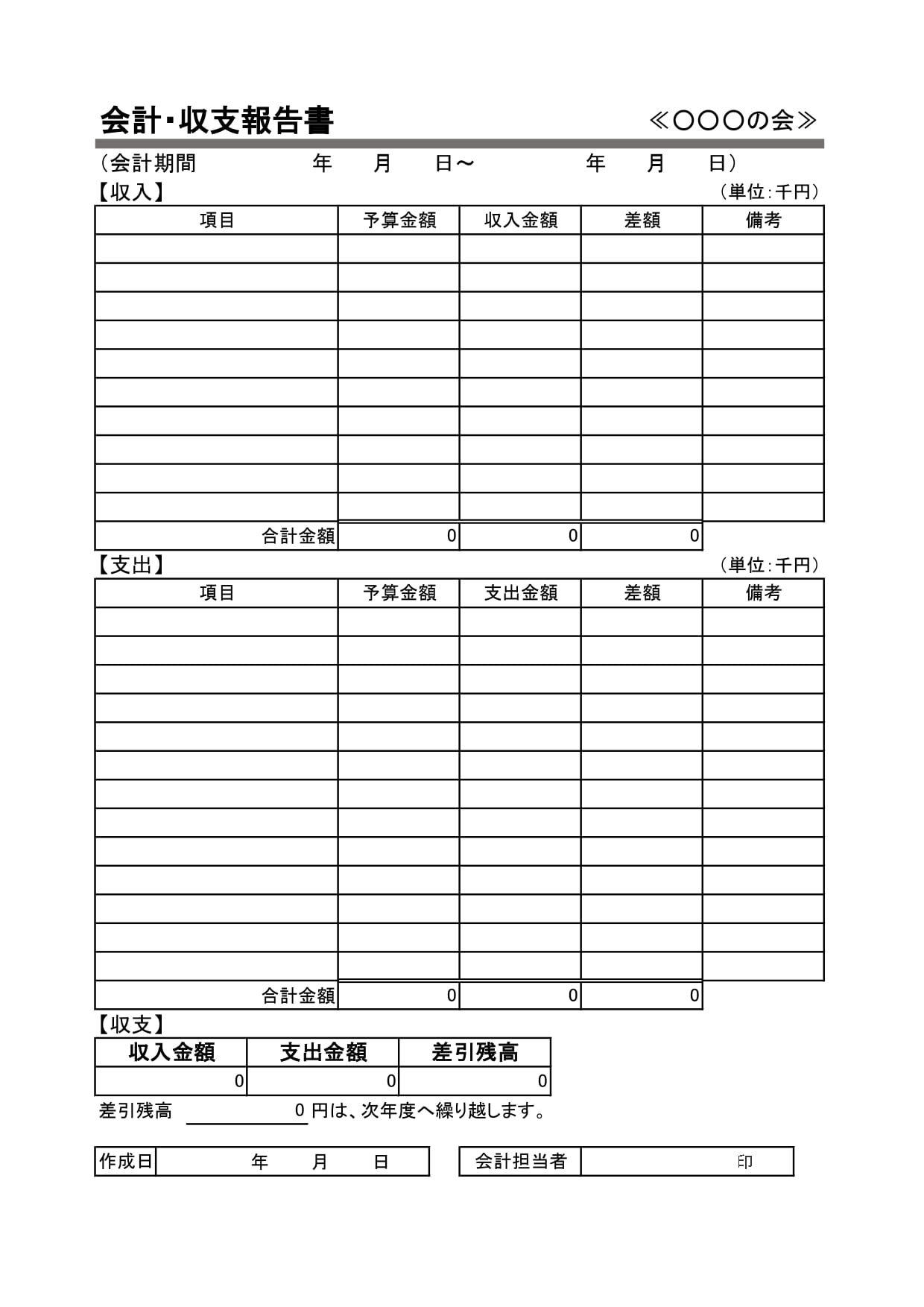 会計報告書のテンプレートで組織や団体の財務状況をわかりやすく報告:A4サイズ 【 ta-00274.zip 】