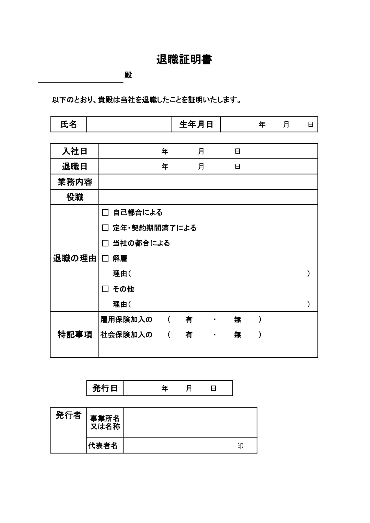 - 退職証明書