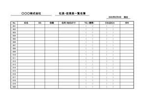 従業員名簿は営業所や事業所ごとに従業員の情報を整理し、効率的な人事管理を行うために役立ちます。テンプレートはExcel、Word、PDFの各形式で利用でき、さまざまな用途に合わせて活用可能です。