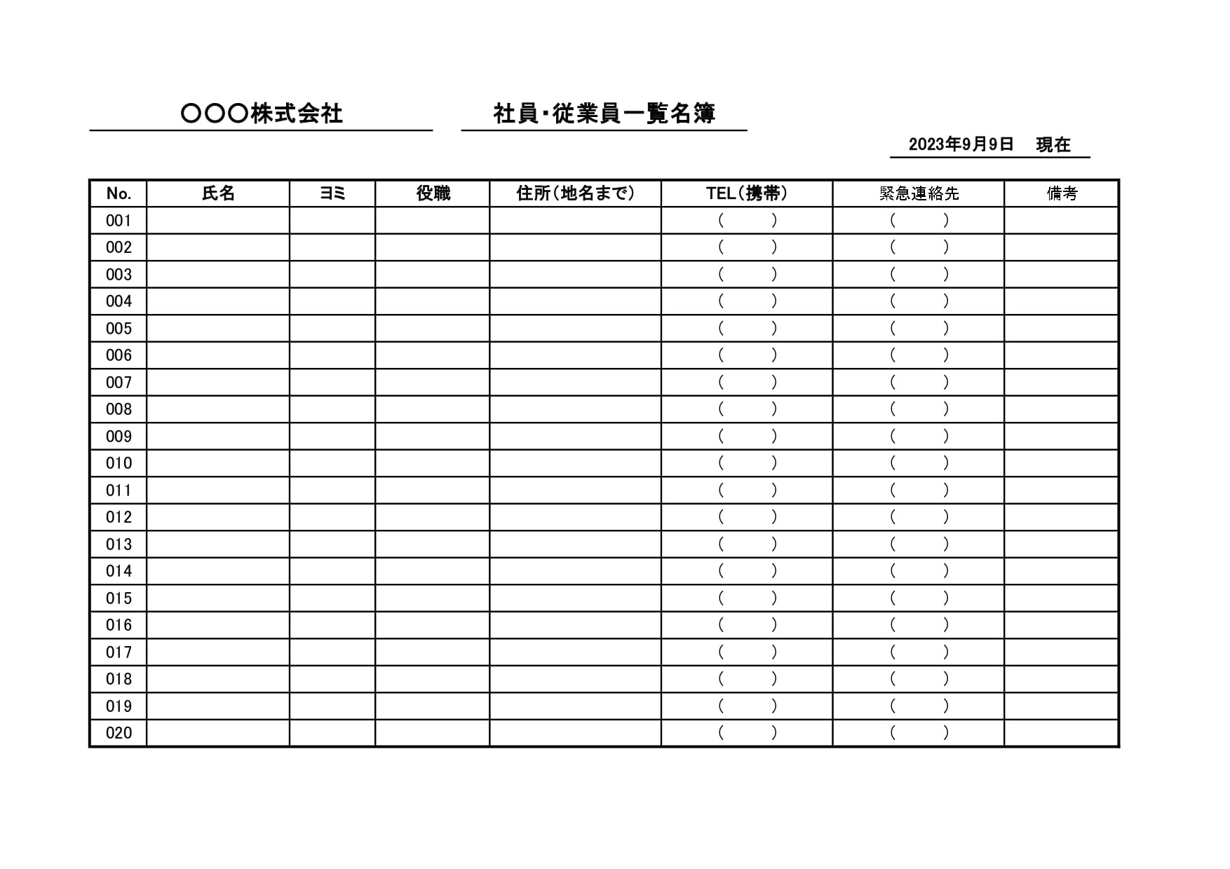 Excel形式では、従業員のデータを簡単に入力・編集できるため、営業所ごとに名簿を一元管理する際に非常に便利です。