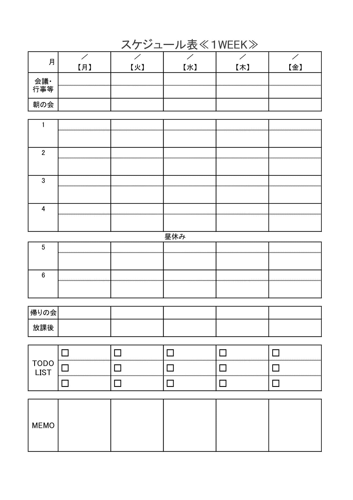 - 週間スケジュール表