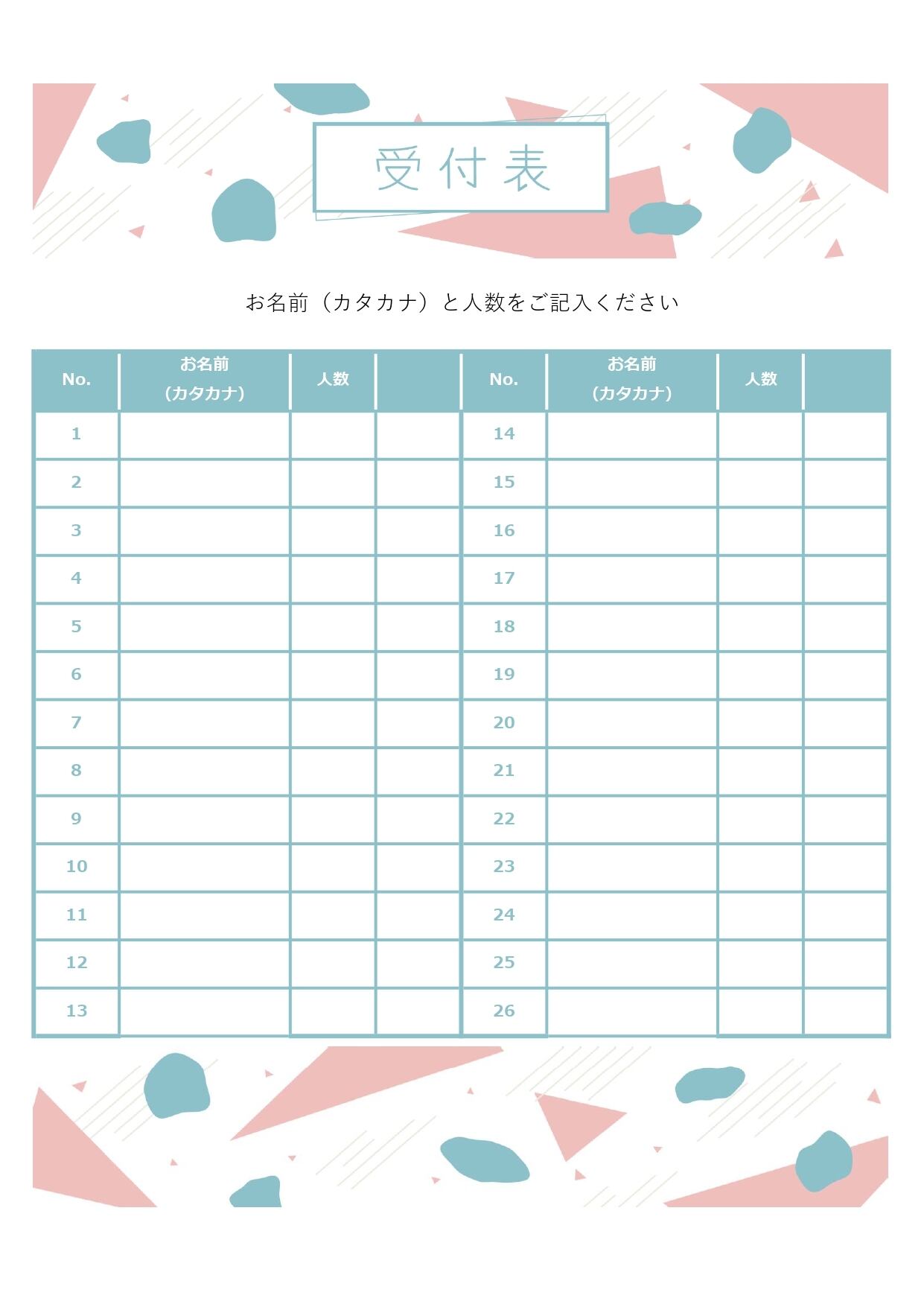 受付表のテンプレートを美容室や結婚式の受付に:ビジネス・シンプル・A4サイズ