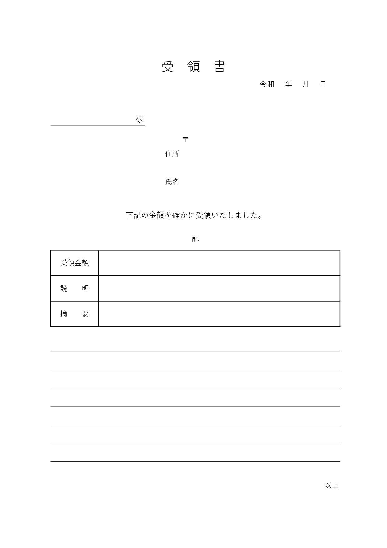 受領書テンプレートは取引の記録や金銭の受領証明として欠かせない:ビジネス・シンプル 【 tm-00172.zip 】