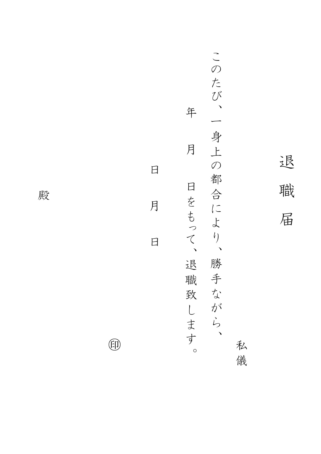 退職届テンプレートは会社や部署の記載が不要な「部署なし」の形式に対応:ビジネス・シンプル