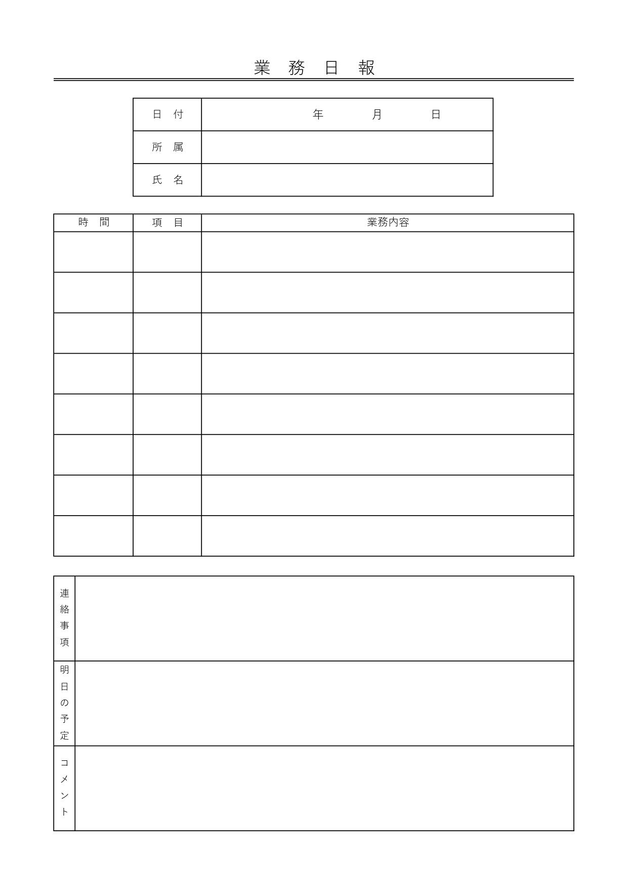業務日報テンプレートは書き方もわかりやすい構成の縦向きレイアウト:ビジネス・シンプル 【 tm-00732.zip 】